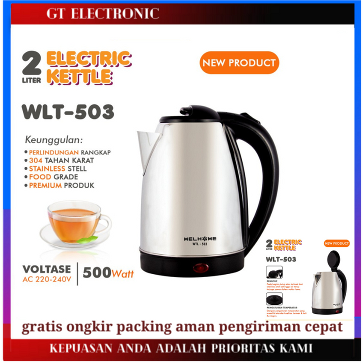 Welhome & Yundai - Teko Listrik Kettle Listrik / teko listrik 2 L /1.5 L Liter Wlt-503