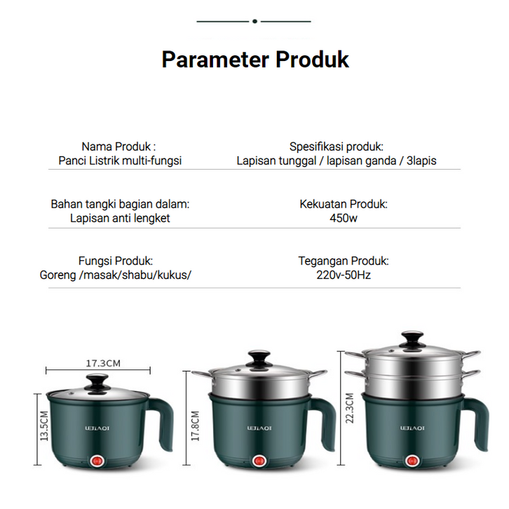 MTE Multifungsi Electric Fry Pan / Panci Listrik Lapisan Keramik 18CM