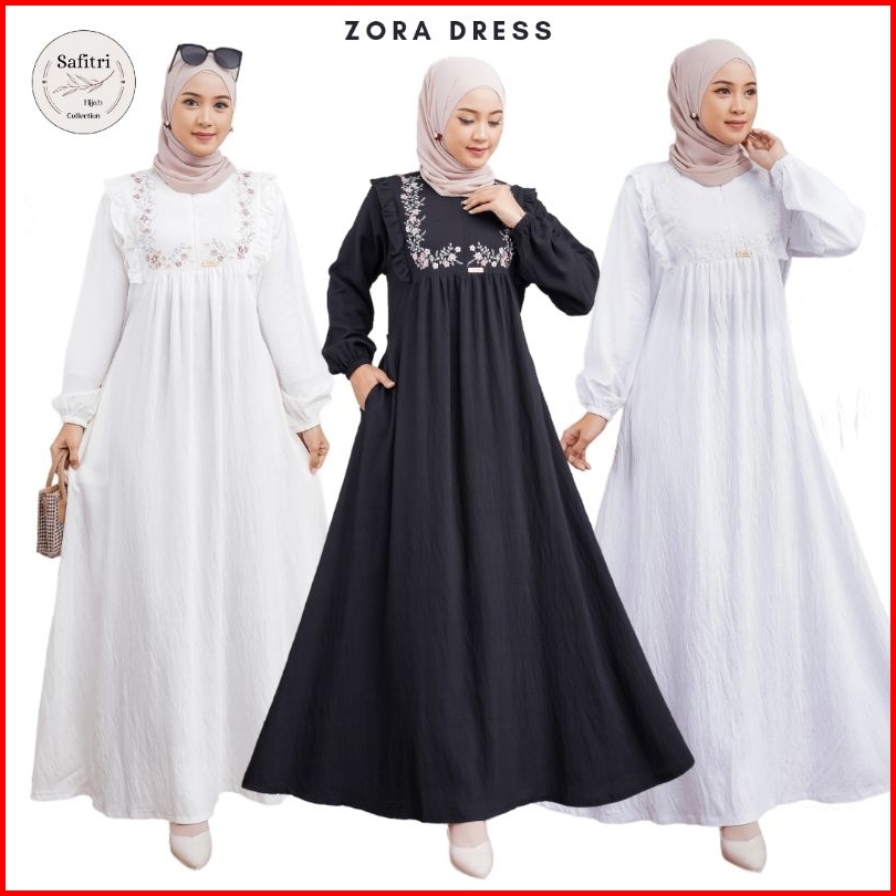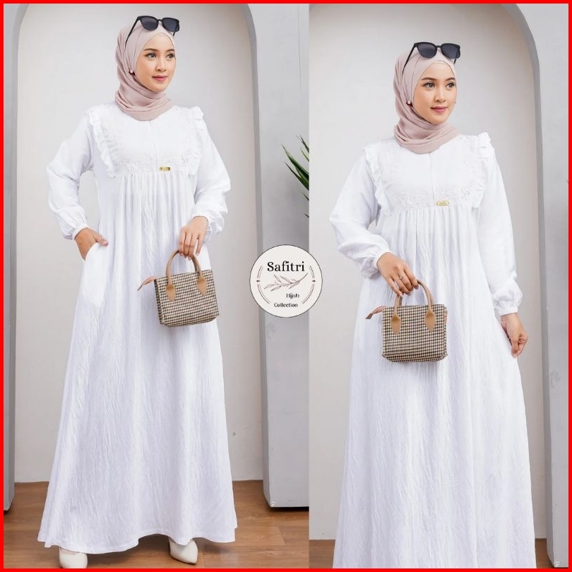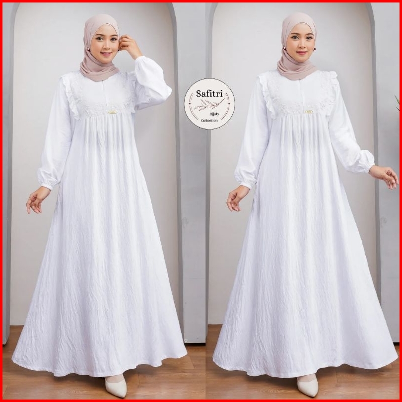 Zora Dress 1 Gamis Bahan Polo Linen Putih Hitam Manasik Haji Thawaf Umroh By Safitri Fashion