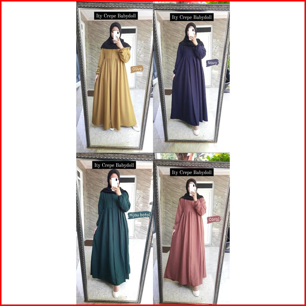 Dress Babydoll S-xxxl Ity Crepe Basic Gamis Polos Seri 1