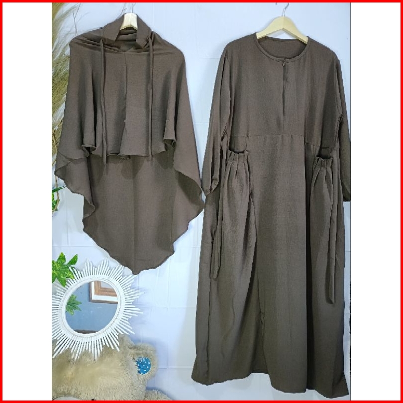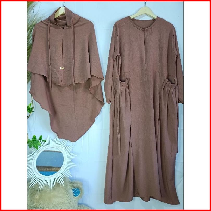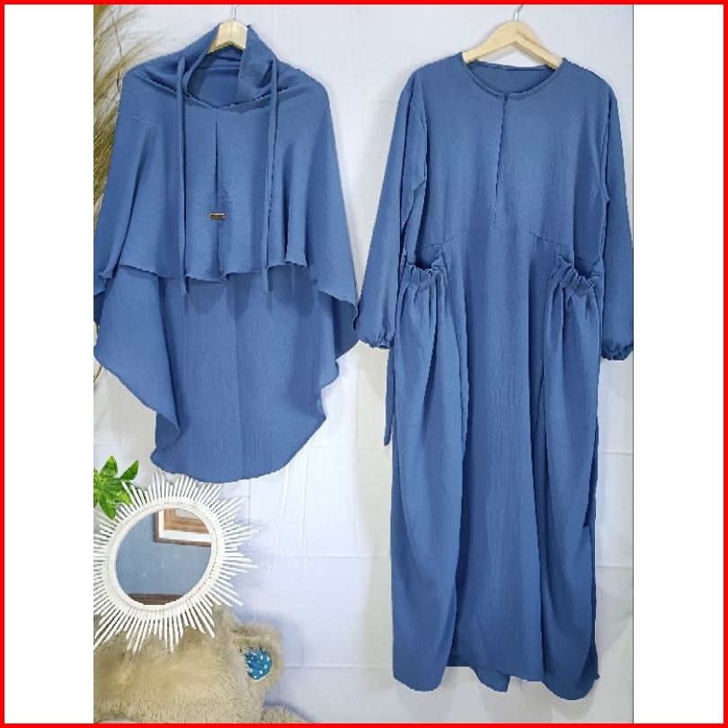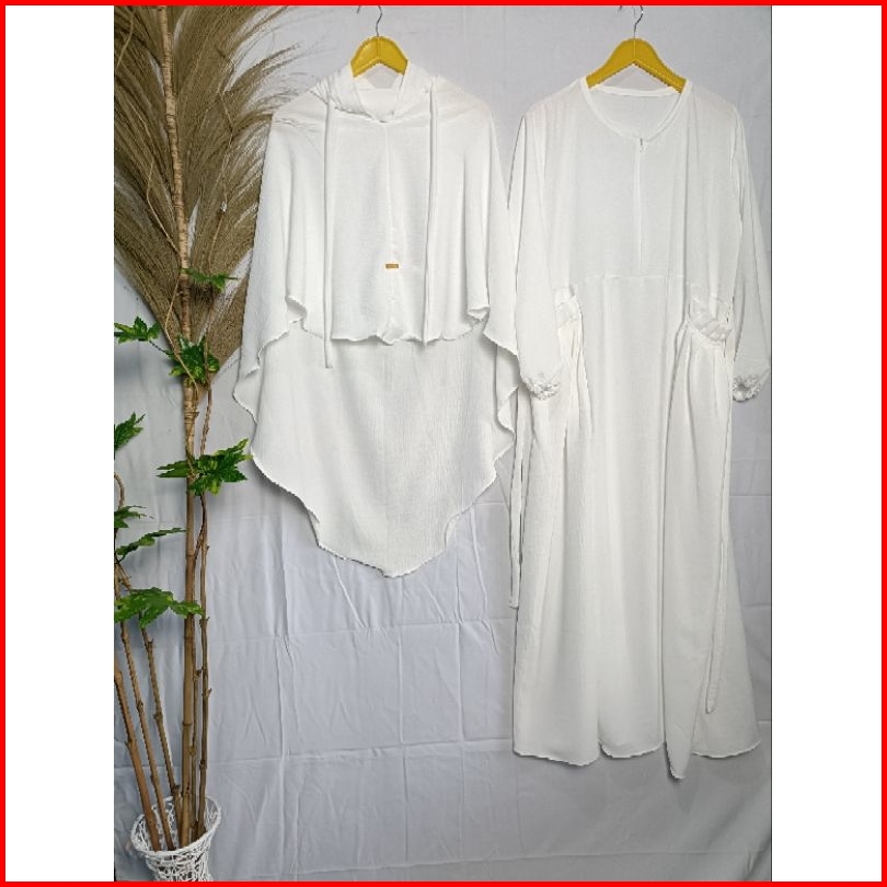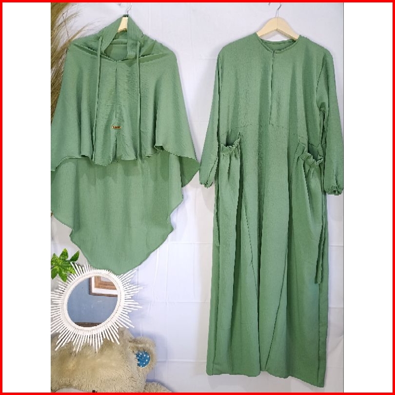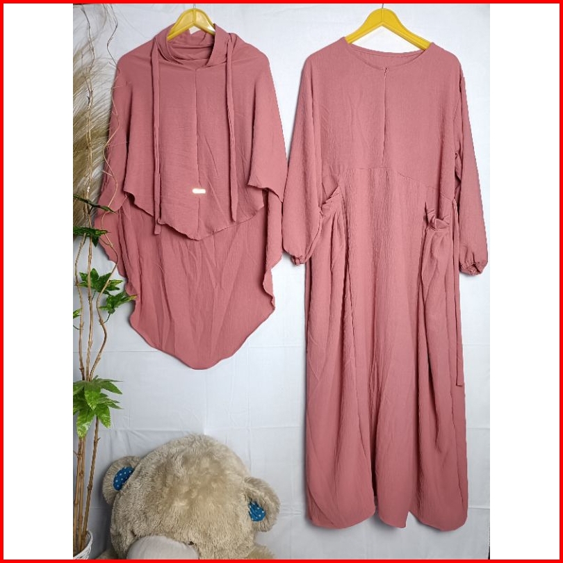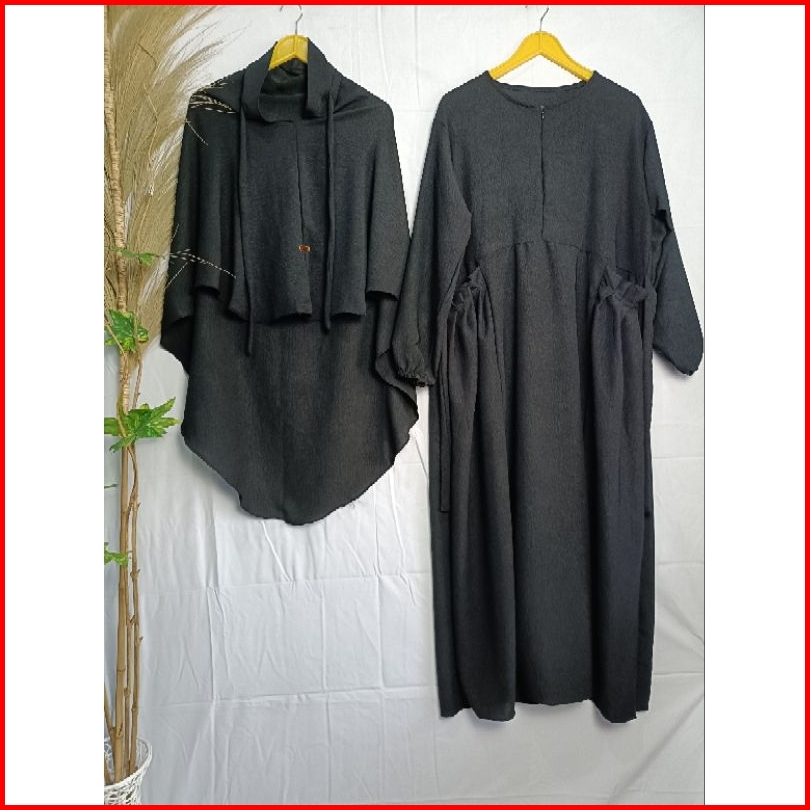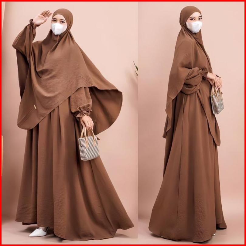 Gamis Jumbo Set Hijab Muslim Wanita Aska Syari Airflow Ld 115-120-135cm Muat Bb 40-95kg