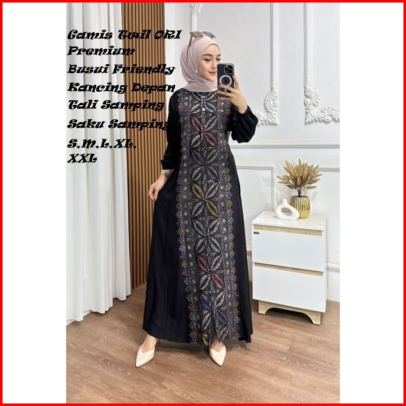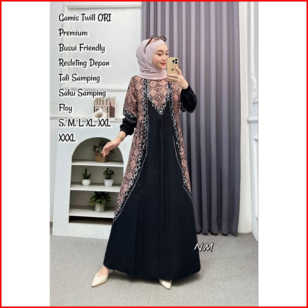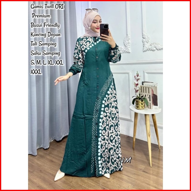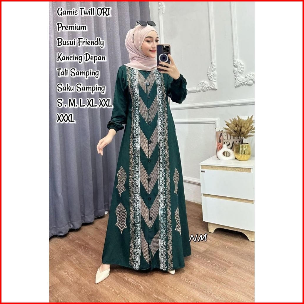 Gamis Twill Ori Terbaru Full Kancing Busui Friendly