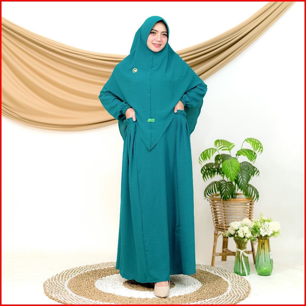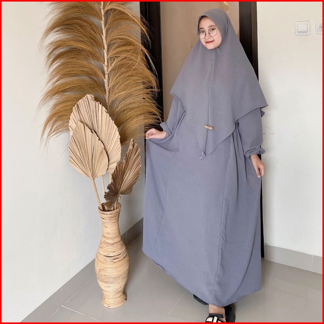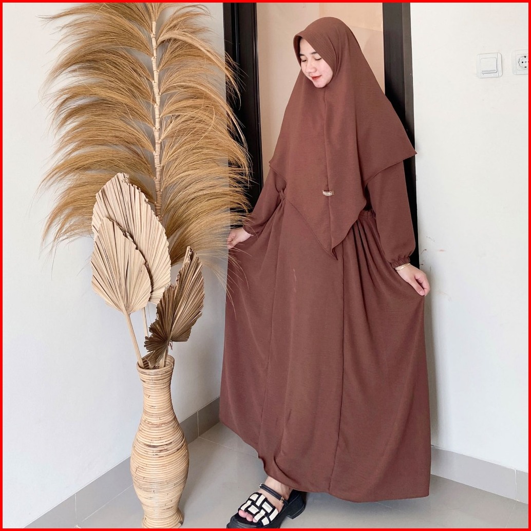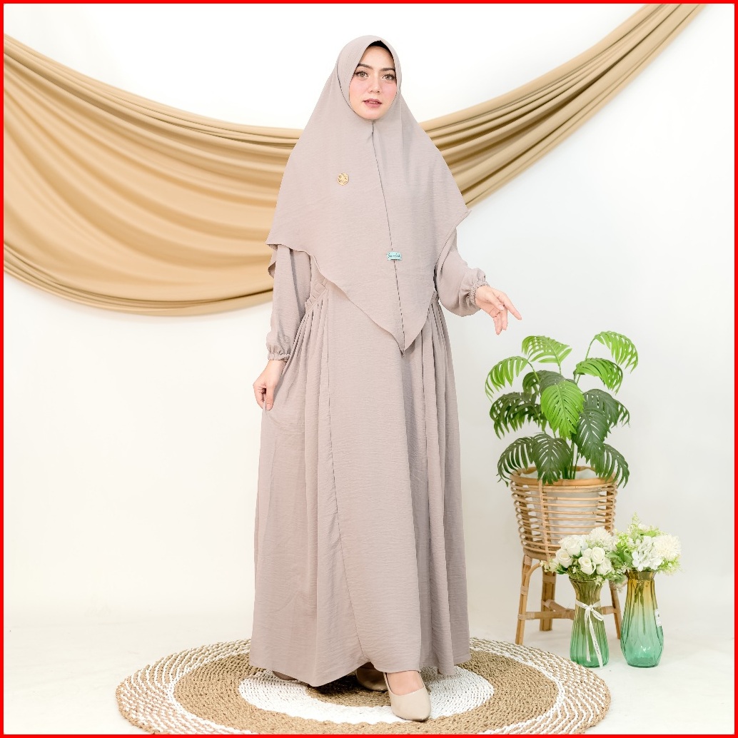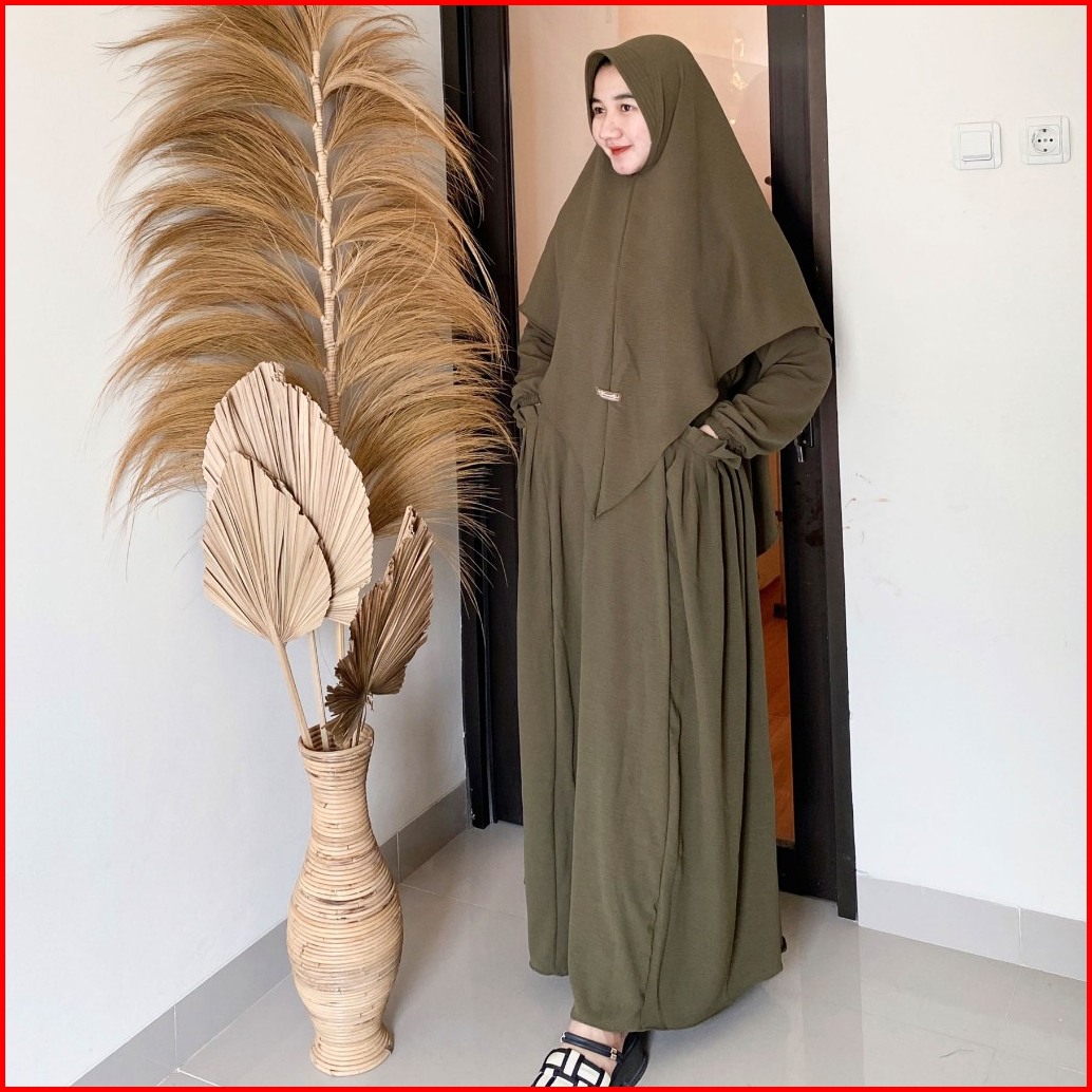 Gamis Syari Terbaru Aisyah Set Dengan Kerudung Bahan Kringkel Airflwo Adem Dan Jatoh