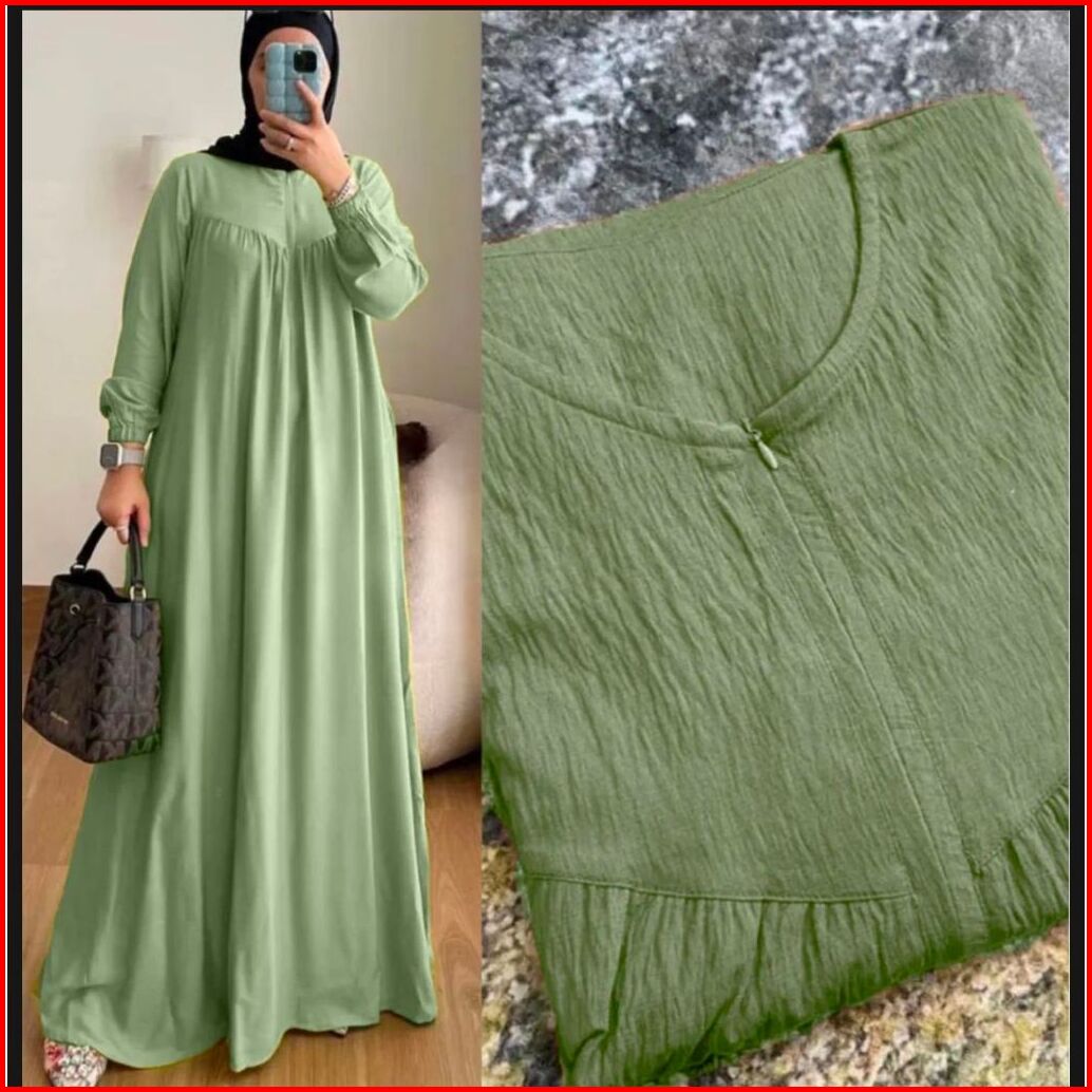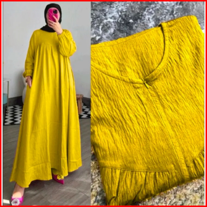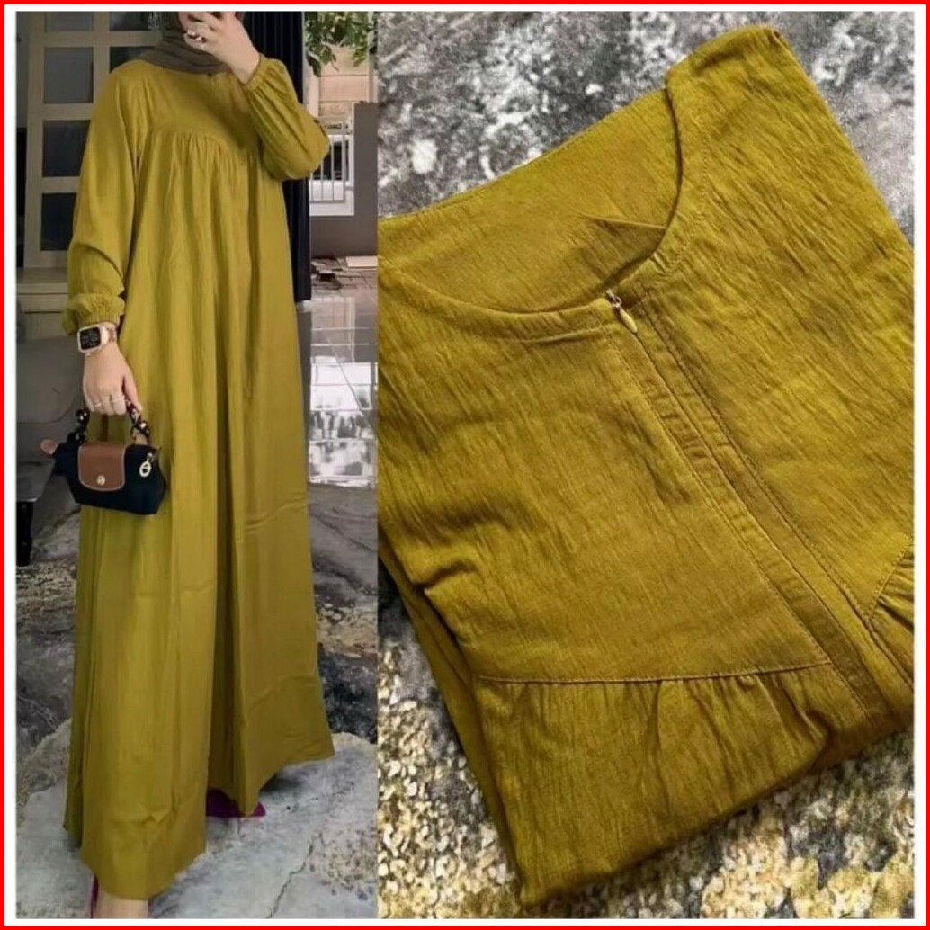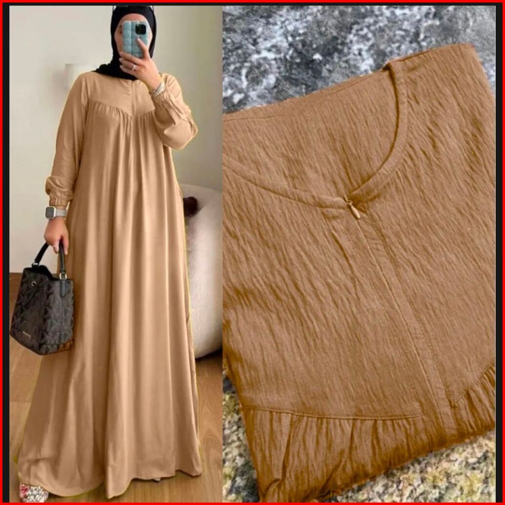 Gamis Wanita Rempel Crinkle Airflow Polos Resleting Depan Busui Jumbo Kekinian Model Terbaru Mewah