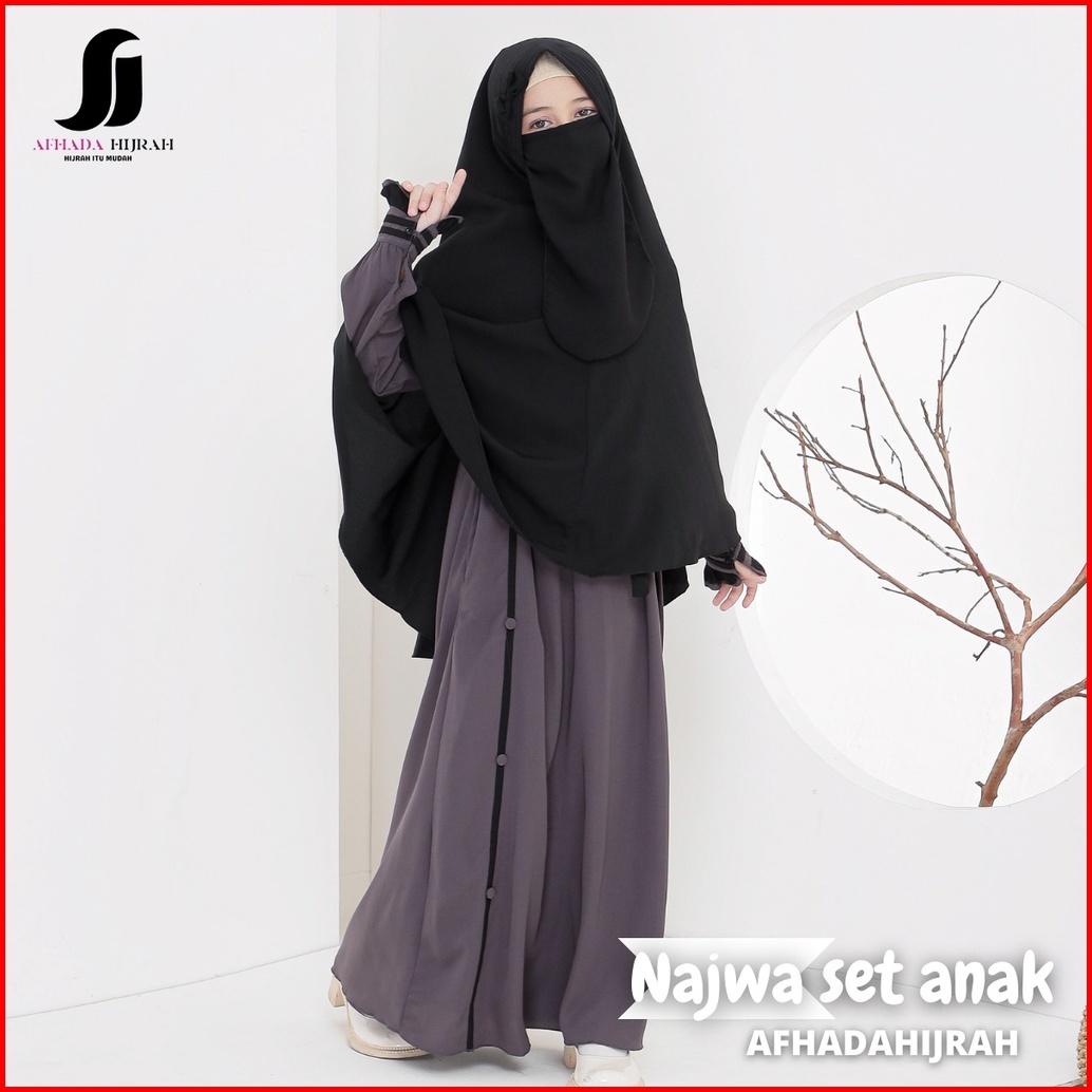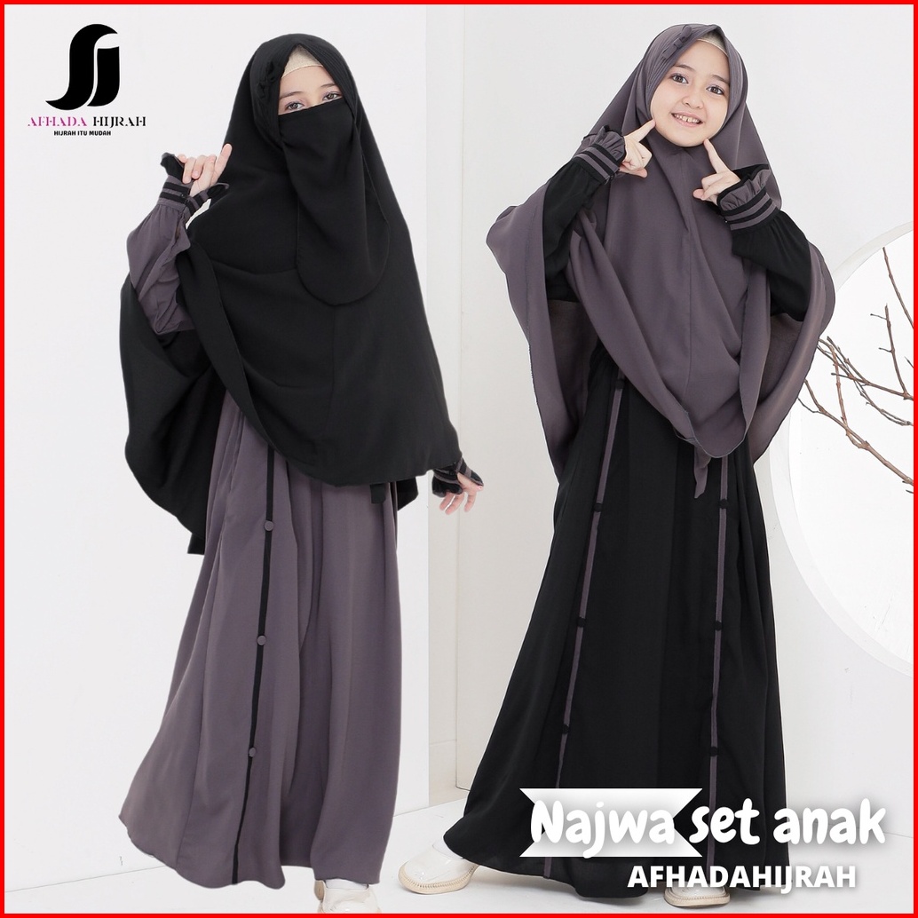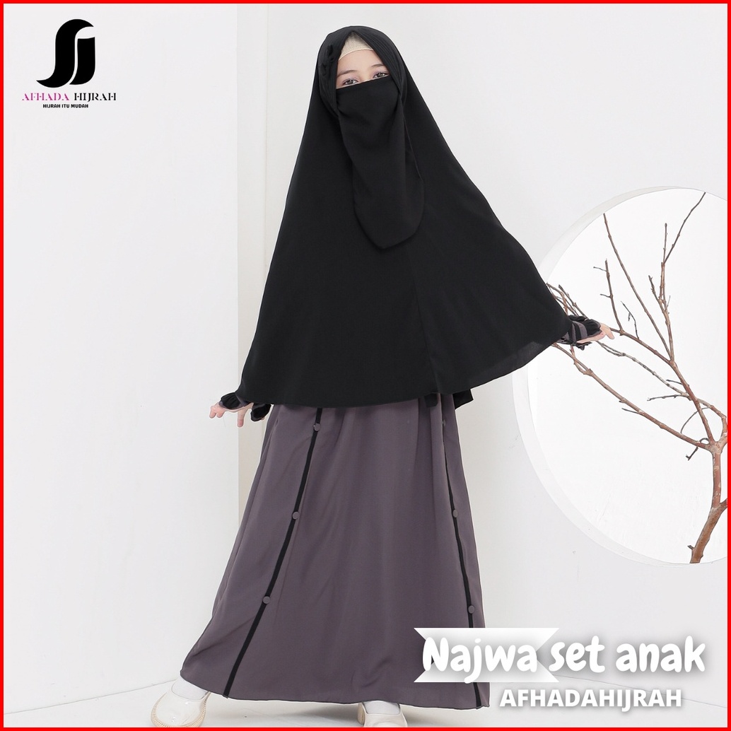 Afhadahijrah - Gamis Anak Perempuan Set Cadar Najwa Abu Hitam Terbaru Baju Dan Hijab Syari Free Niqab