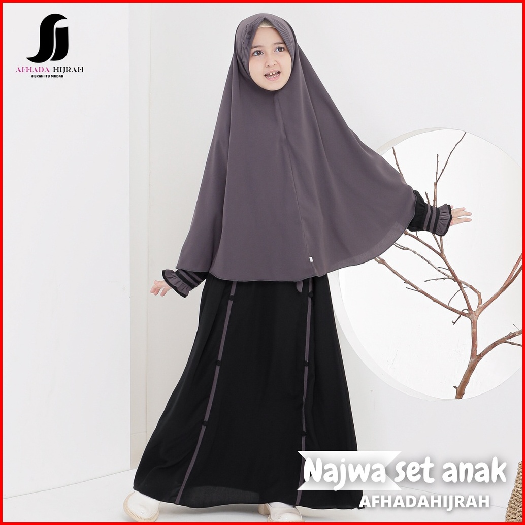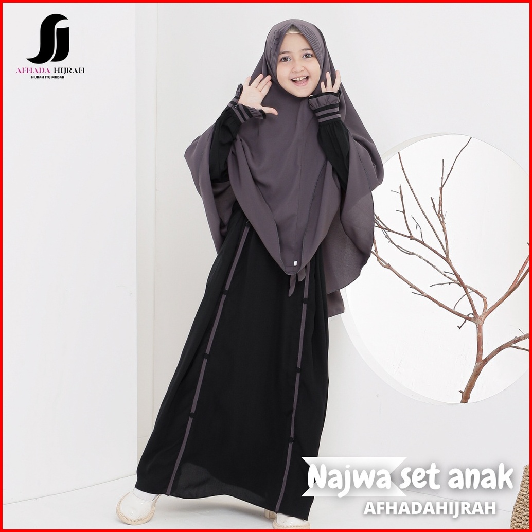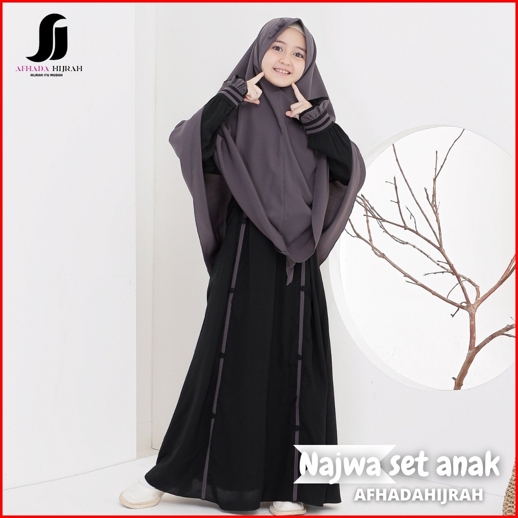 Afhadahijrah - Gamis Anak Perempuan Set Cadar Najwa Abu Hitam Terbaru Baju Dan Hijab Syari Free Niqab