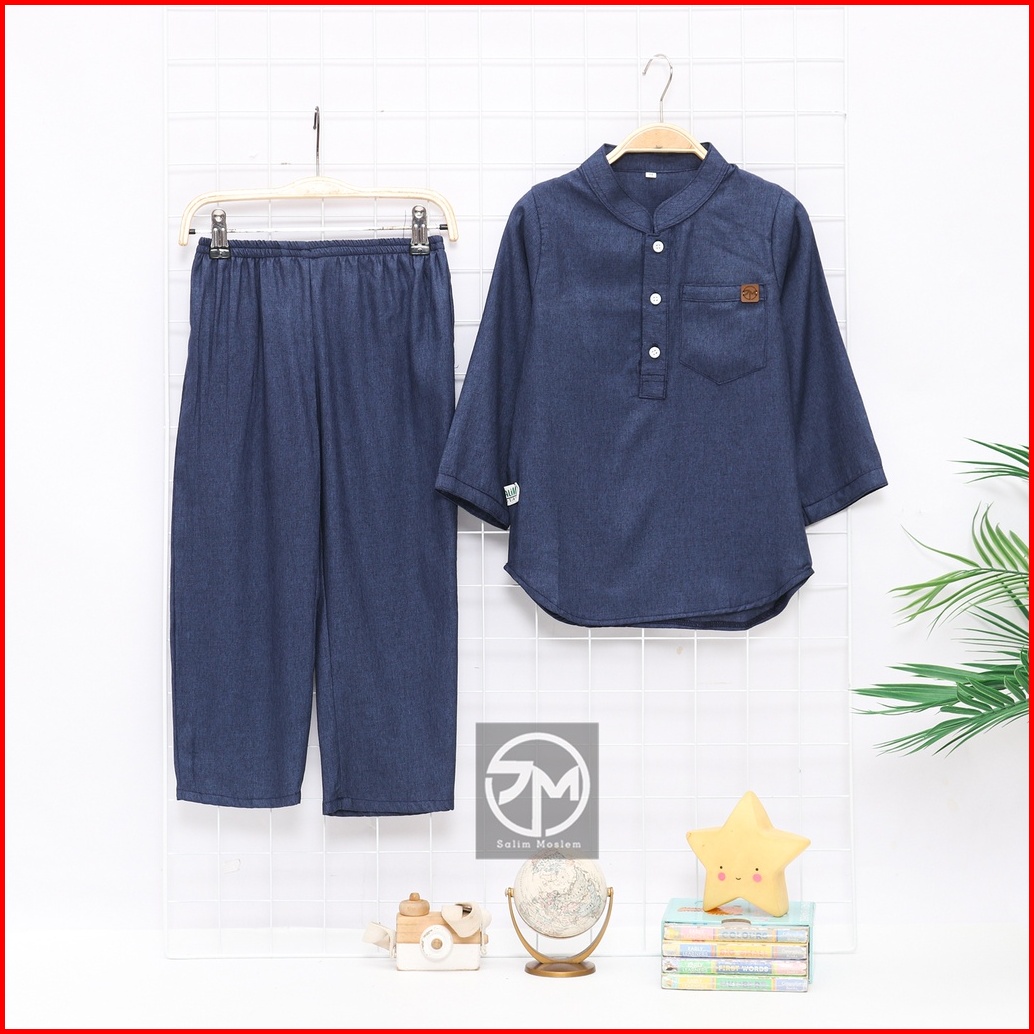 Salim Moslem Koko Anak Laki-lak Koko Set Anak Lengan Panjang Baju Setelan Anak Laki-laki Katun Madina 1-12 Tahun