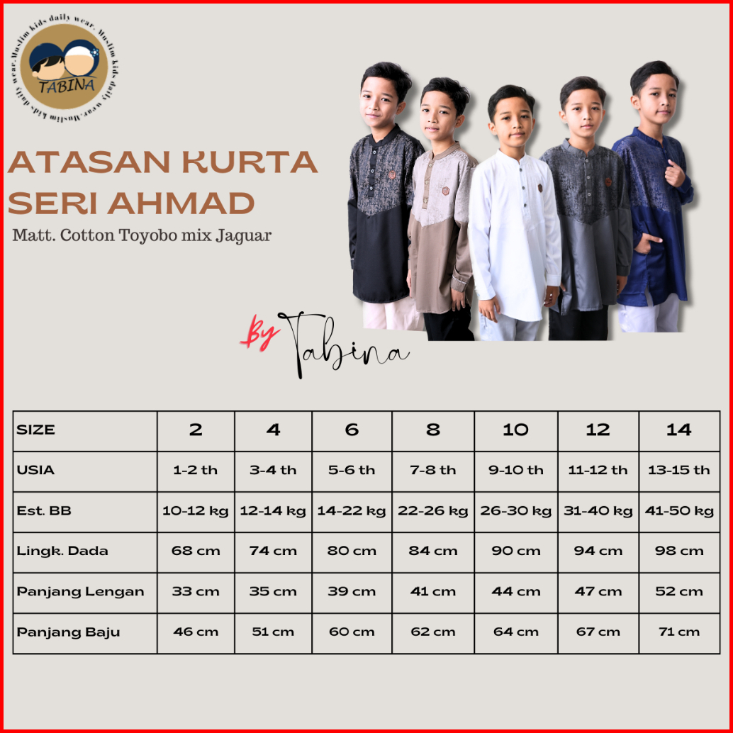 Koko Kurta Anak Laki Laki Sampai Remaja Tabina Seri Ahmad Untuk Anak 2 Tahun Hingga 16 Tahun