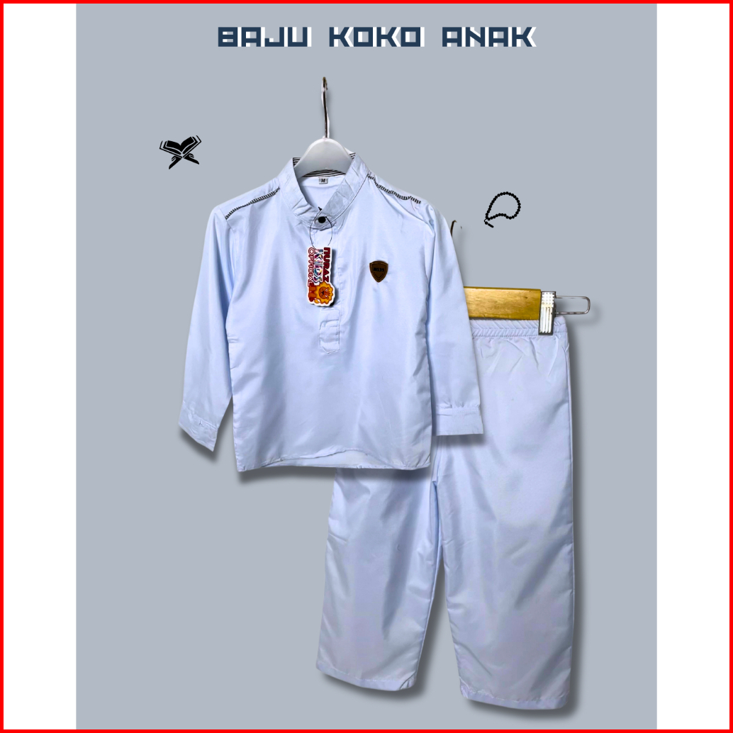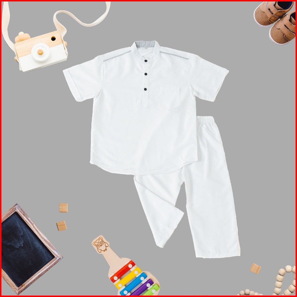 Setelan Koko Anak Habibi Junior Hooneybee Warna Putih Size 1-10 Tahun