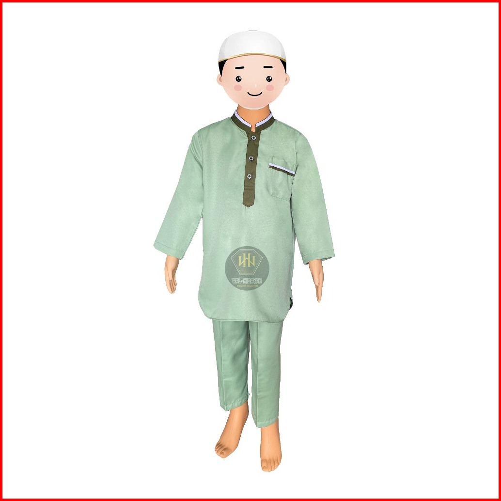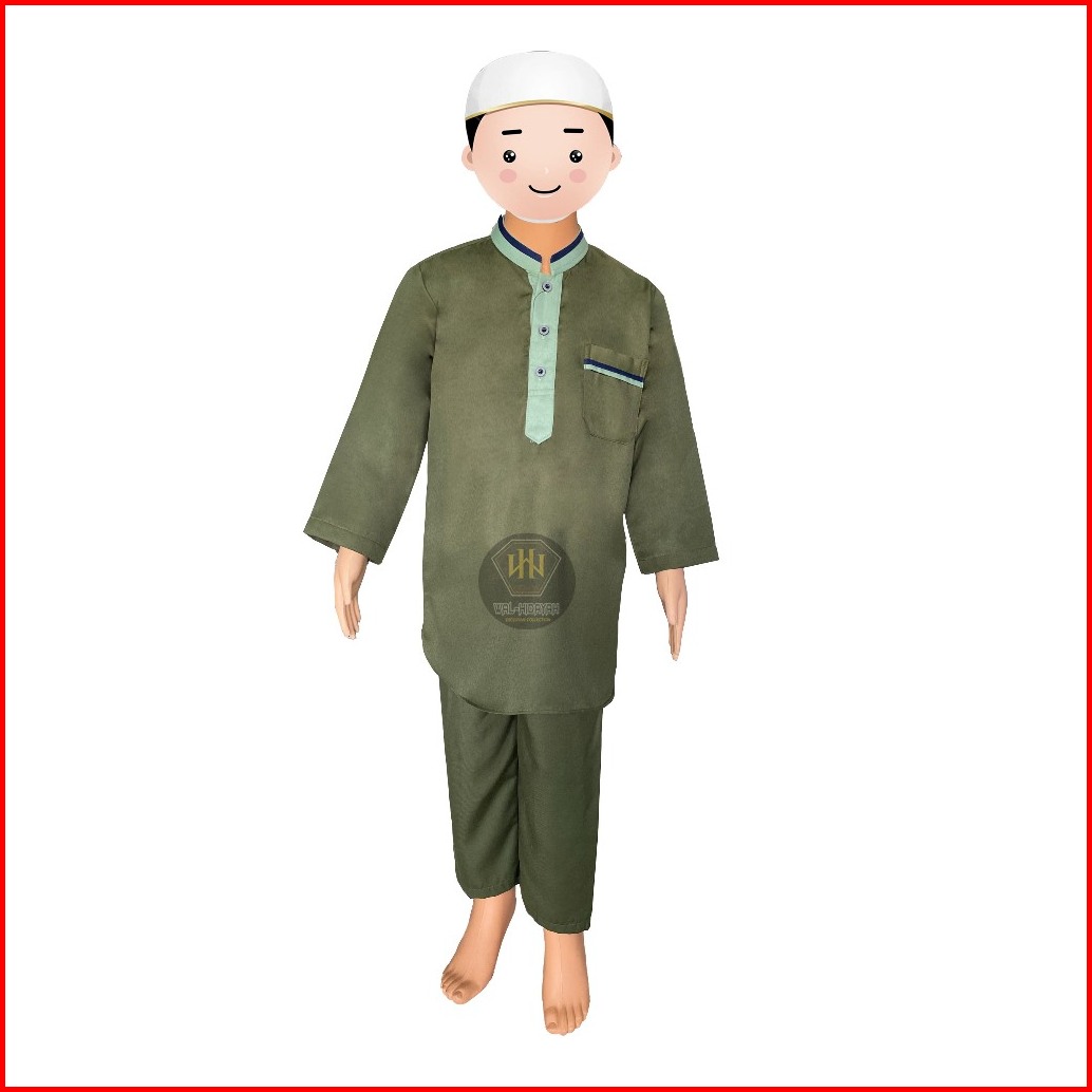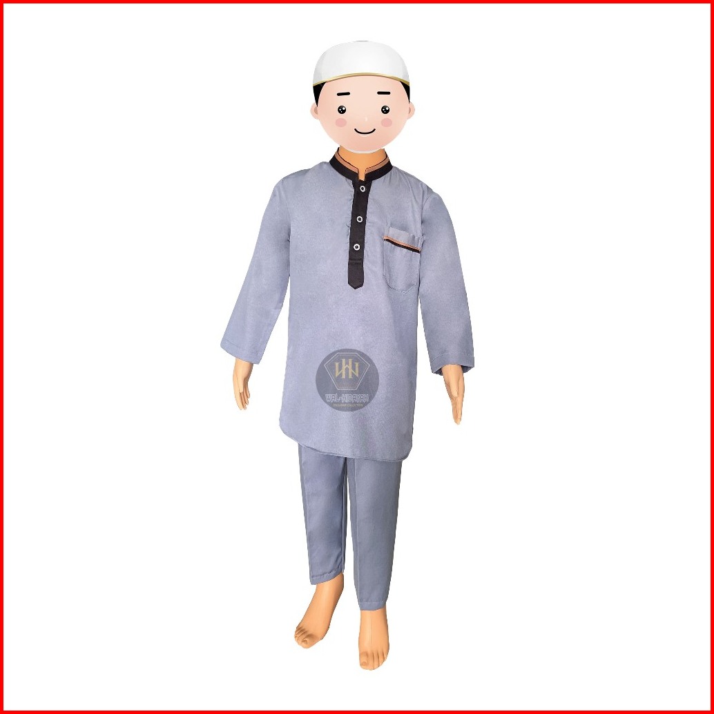 Koko Kurta Anak Laki-laki Lengan Panjang Bahan Katun Twill Setelan Baju Celana One Set Pakaian Muslim Anak Elegan