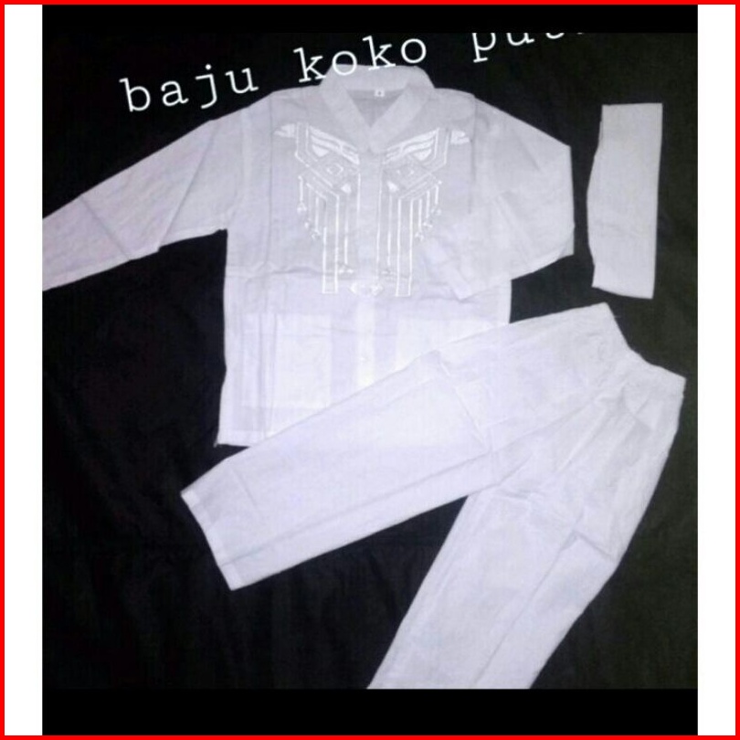 Setelan Baju Koko Kancing Putih Anak Laki-laki Panjang Usia 1th S D 12thn Baju Muslim Putih Anak Laki-laki.