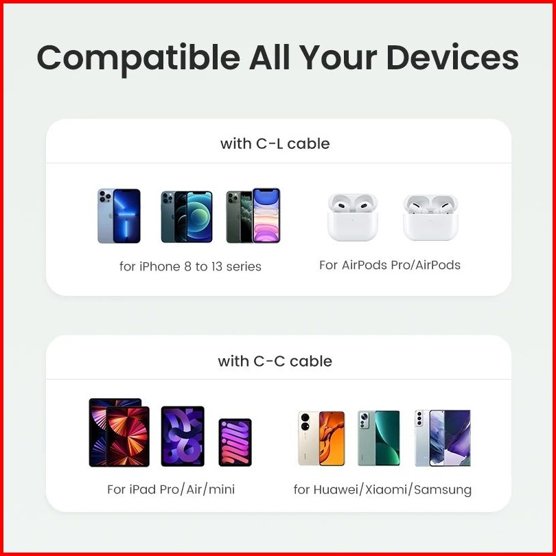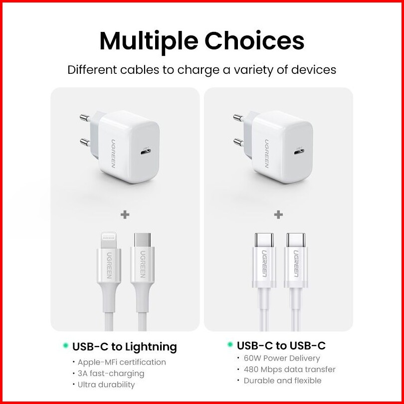 Ugreen Mini Charger 20w Pd Fast Charging Qc 3.0 4.0 Untuk Iphone Android