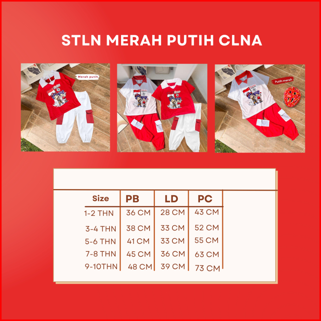 Setelan Baju Merah Putih Kemerdekaan Indonesia 17 Agustus Untuk Anak Perempuan Dan Laki-laki Usia 1 Sampai 10 Tahun Baha