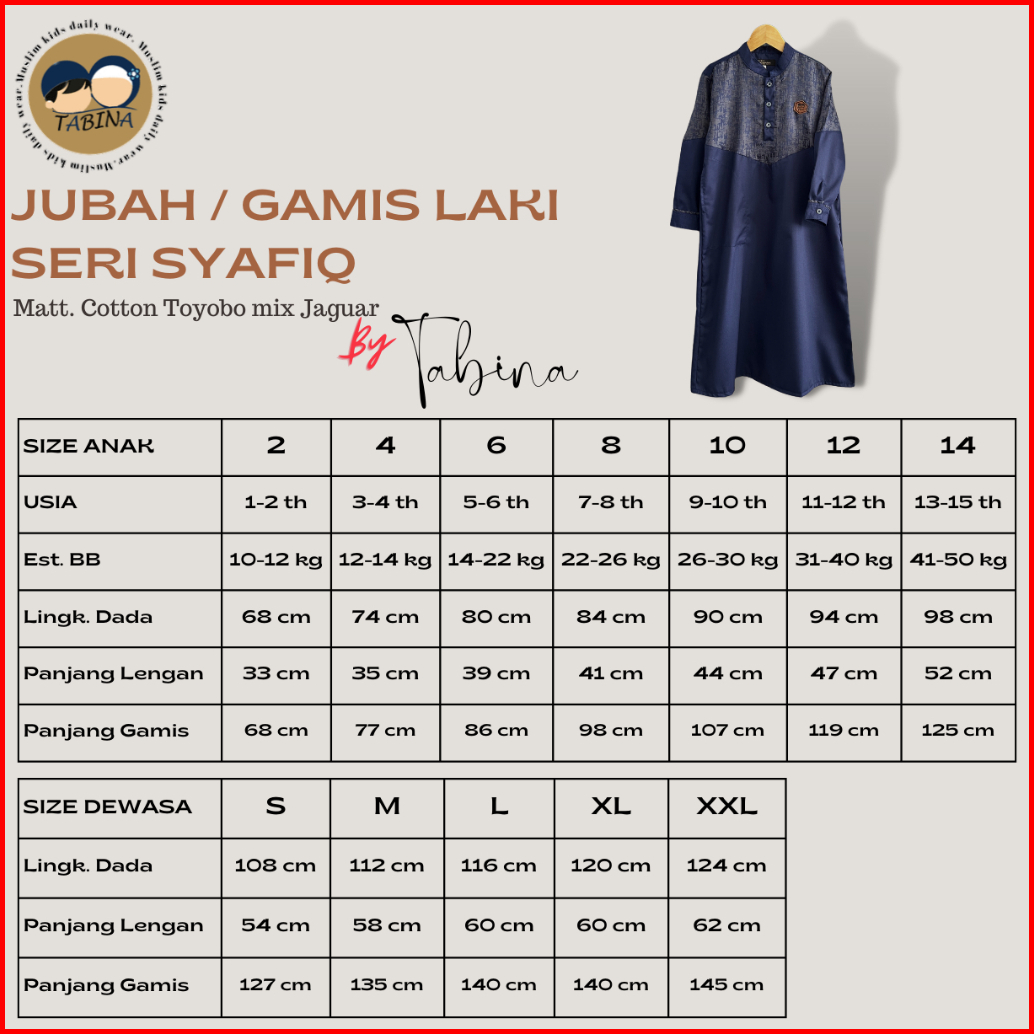 Tabina Gamis Jubah Lengan Panjang Anak Laki Laki Dan Remaja Seri Syafiq Usia 2 Hingga 14 Tahun