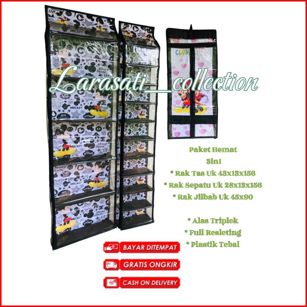 Rak Set 3in1 Rak Tas Gantung Rak Sepatu Gantung Dan Rak Jilbab Gantung Alas Triplek Murah
