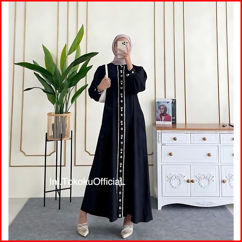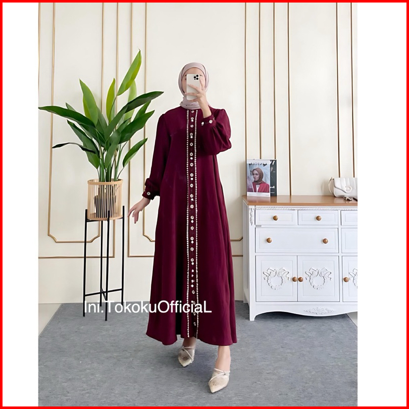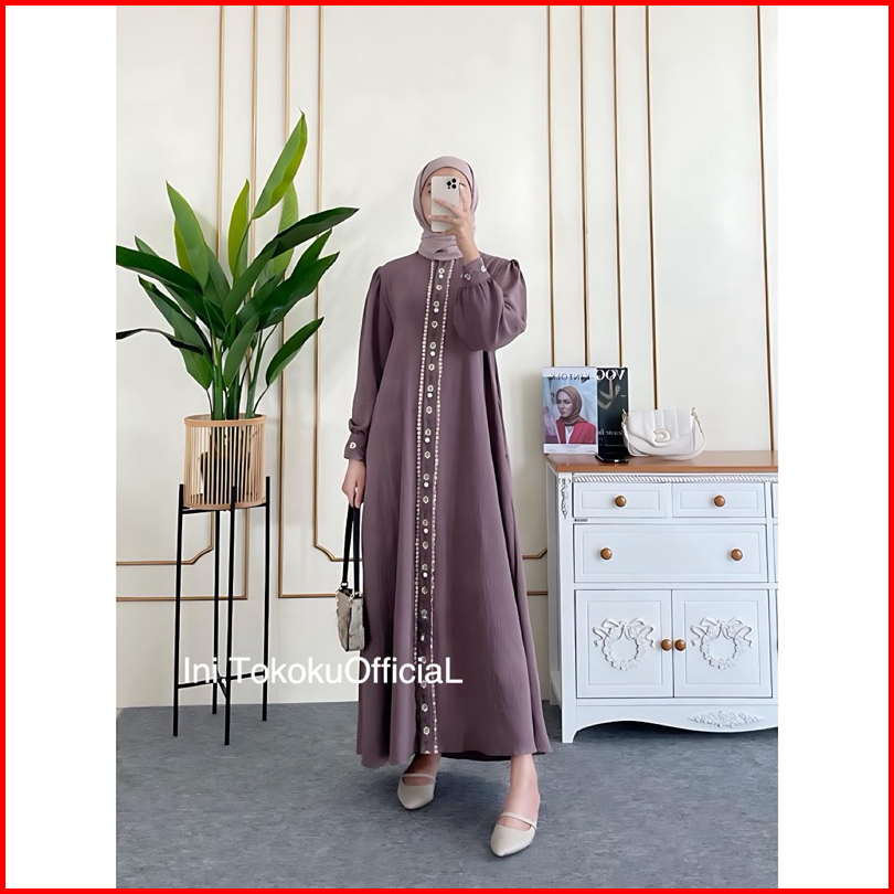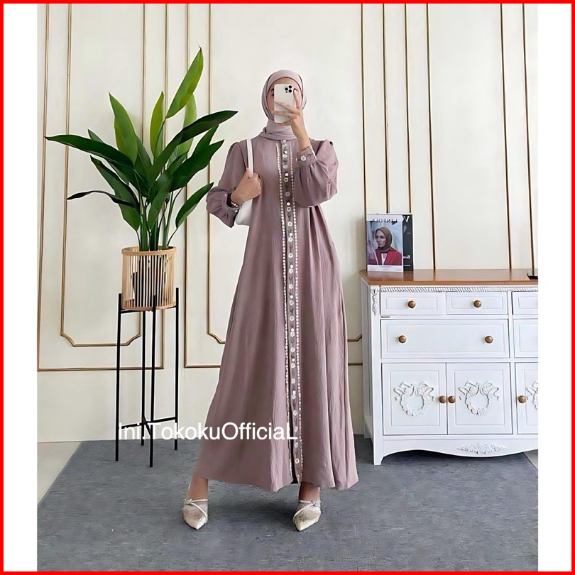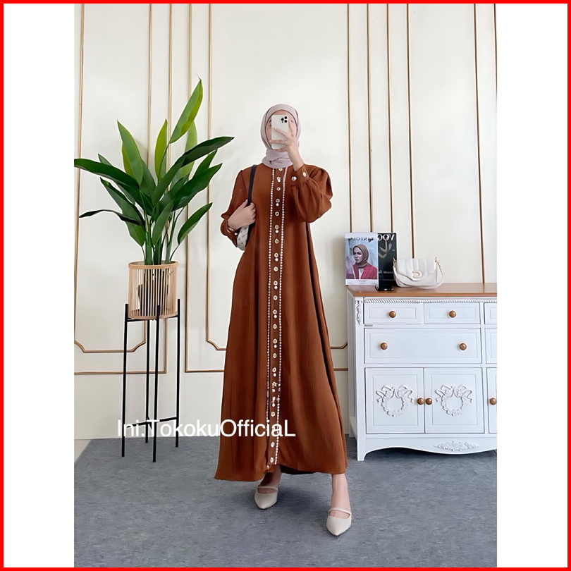 Zahira Dress Bordir Motif Bunga Bahan Crinkle Kancing Hidup Zahira Gamis Terbaru Kekinian Best Seller