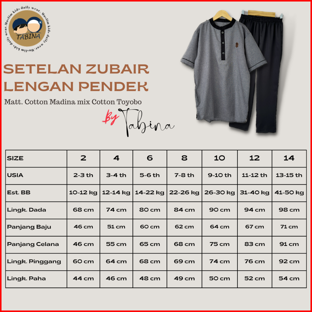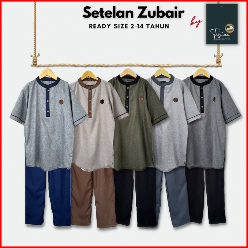 Tabina Setelan Koko Anak Lengan Pendek Seri Zubair Usia 2-14 Tahun Remaja Katun Madina Mix Toyobo