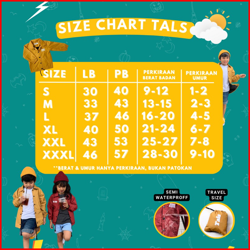 Tals Jacket - Couch Jaket - Jaket Anti Hujan Gerimis - Jaket Anak Laki-laki Perempuan