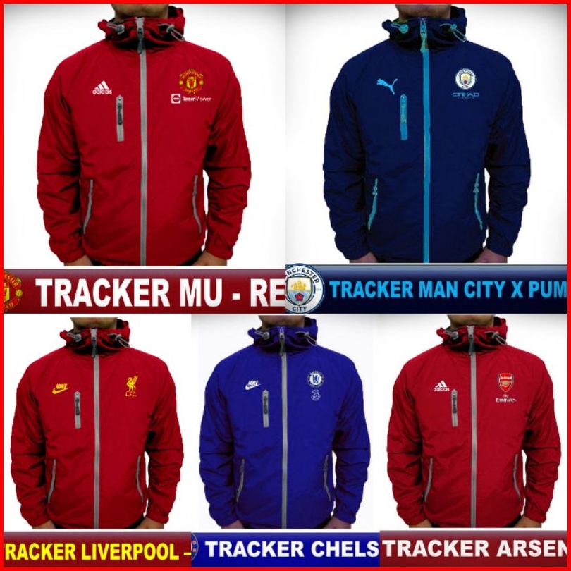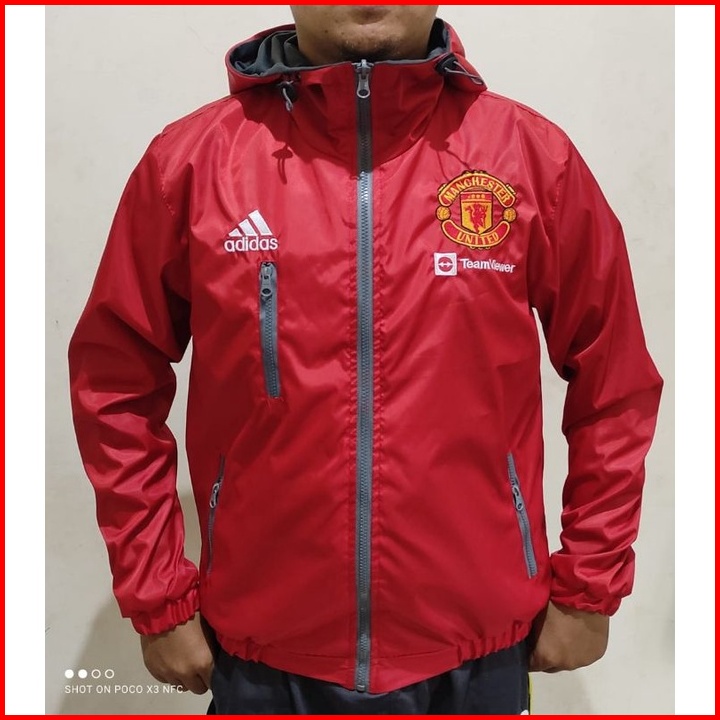 Jaket Pria Wanita Bola Motor Harian Murah Berkualitas Outdoor Windproof Tracker Bola Klub Liga Inggris Mu Merah