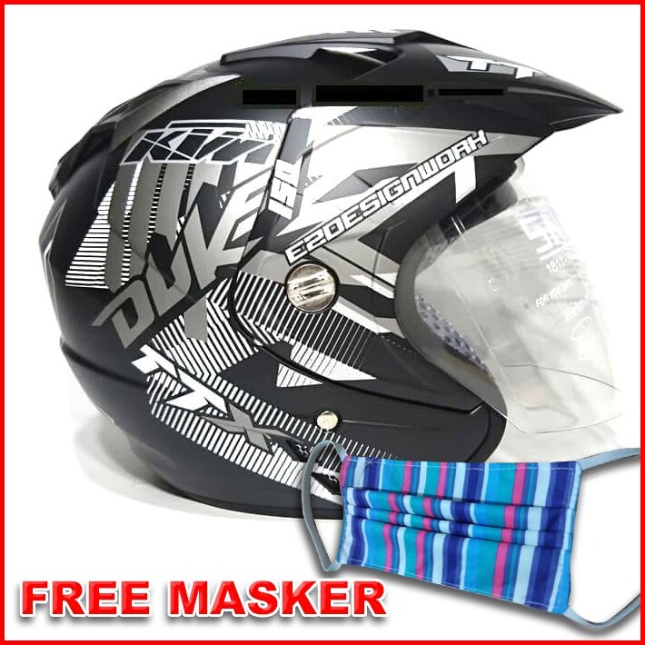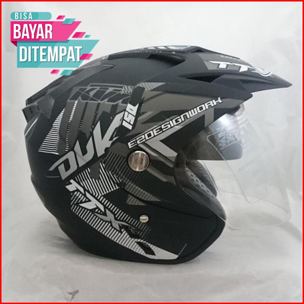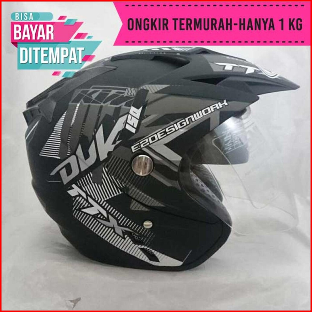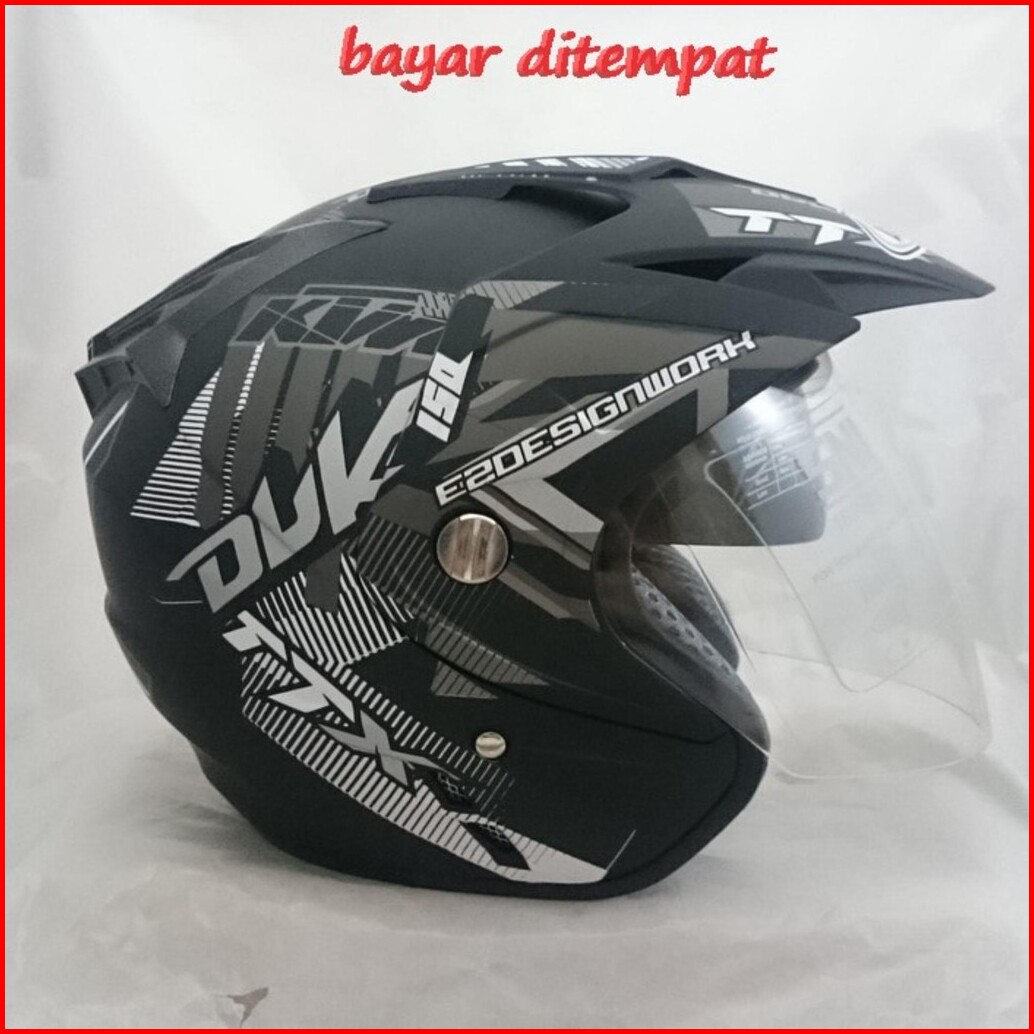 11.11 Helm Motor Sni Ori Double Visor Dua Helem Duke Hitam Doff Helmet Dewasa