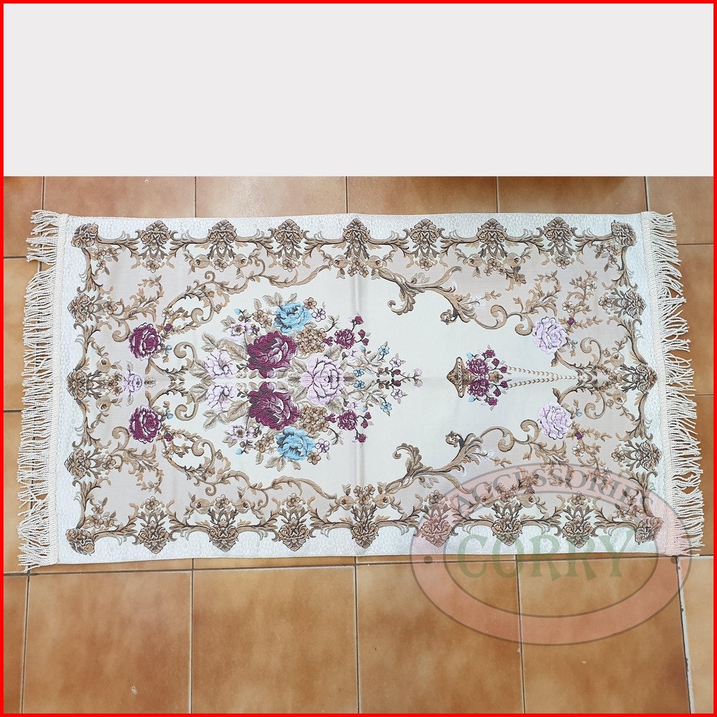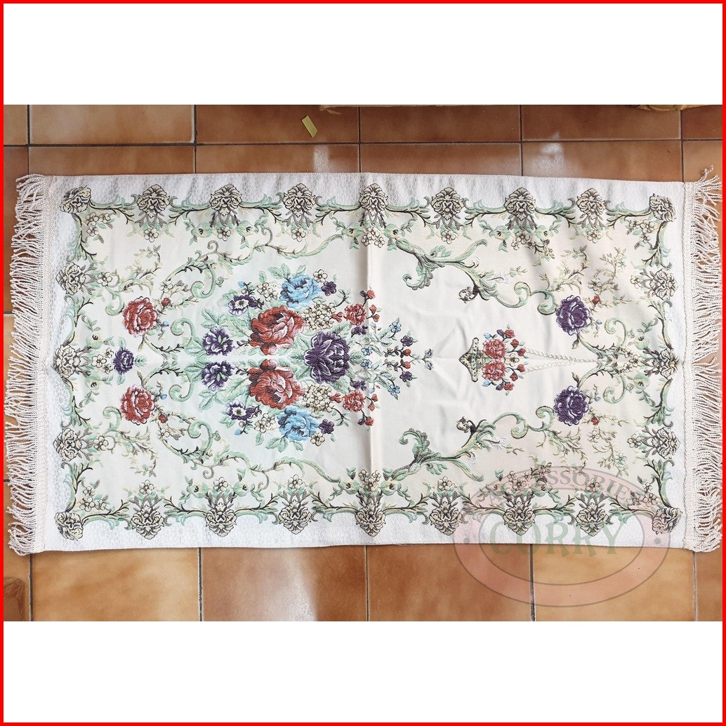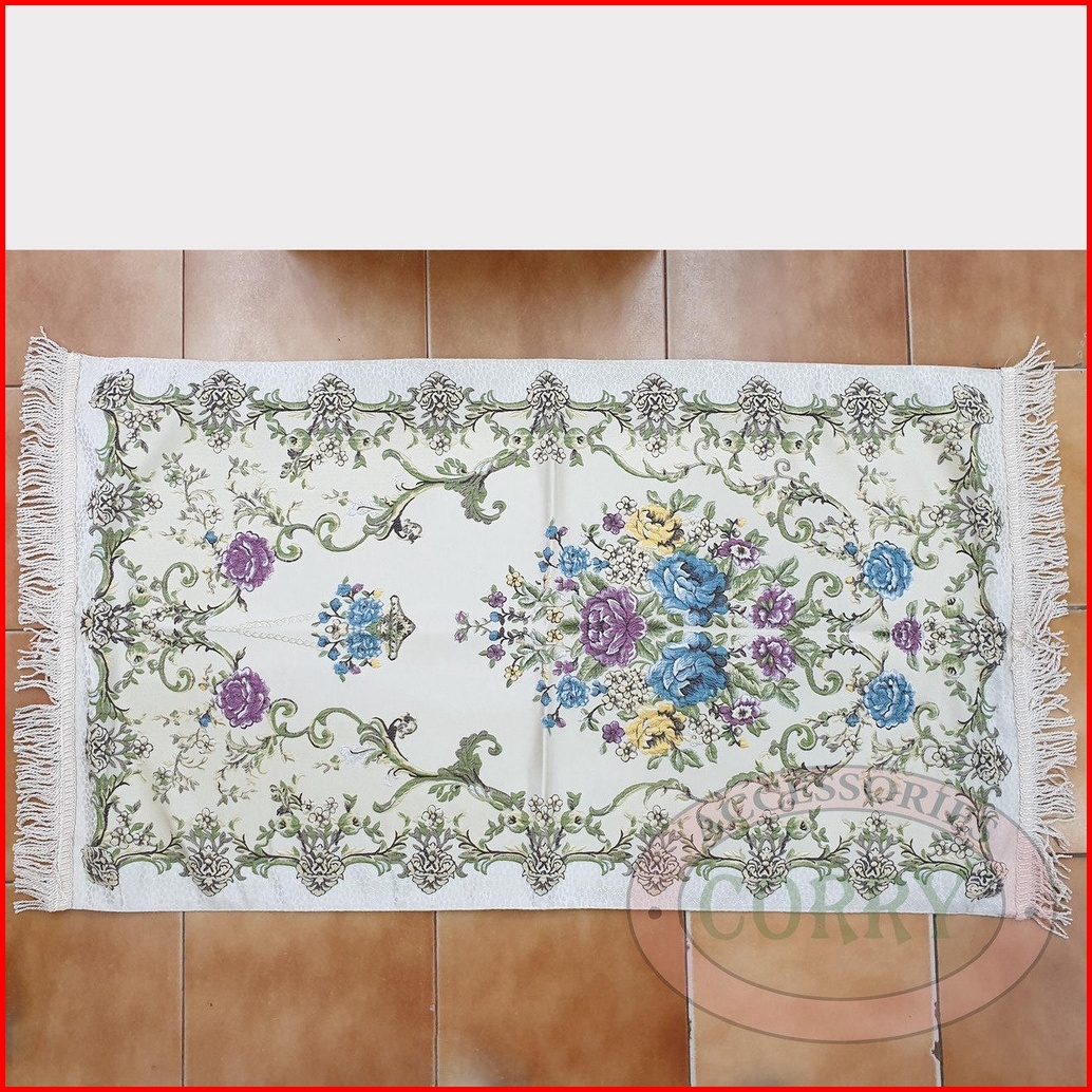 Sajadah Bunga Import Biru Merah Krem 120 X 70 Cm Tebal Silk Satin Bordir Dewasa Model Turki