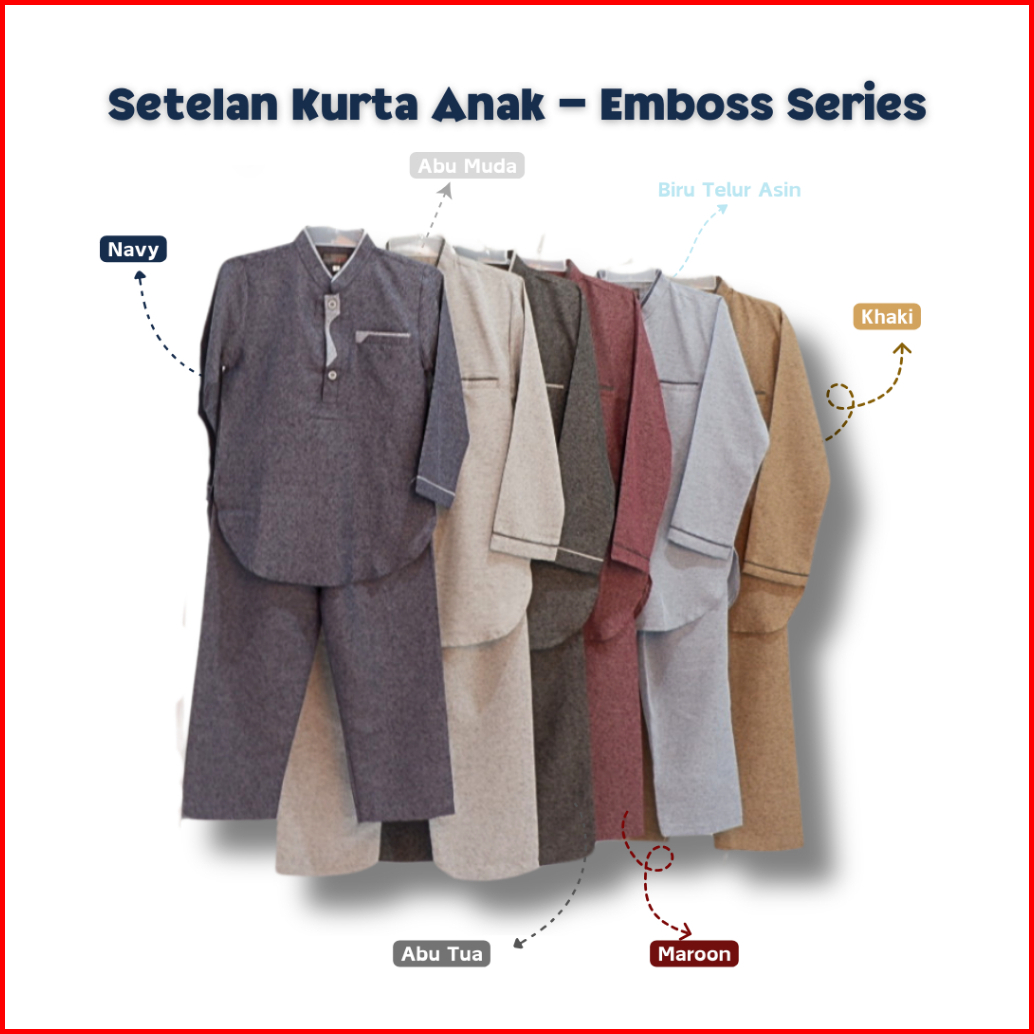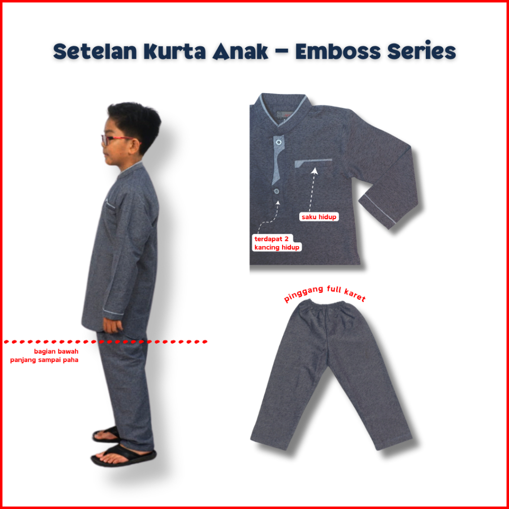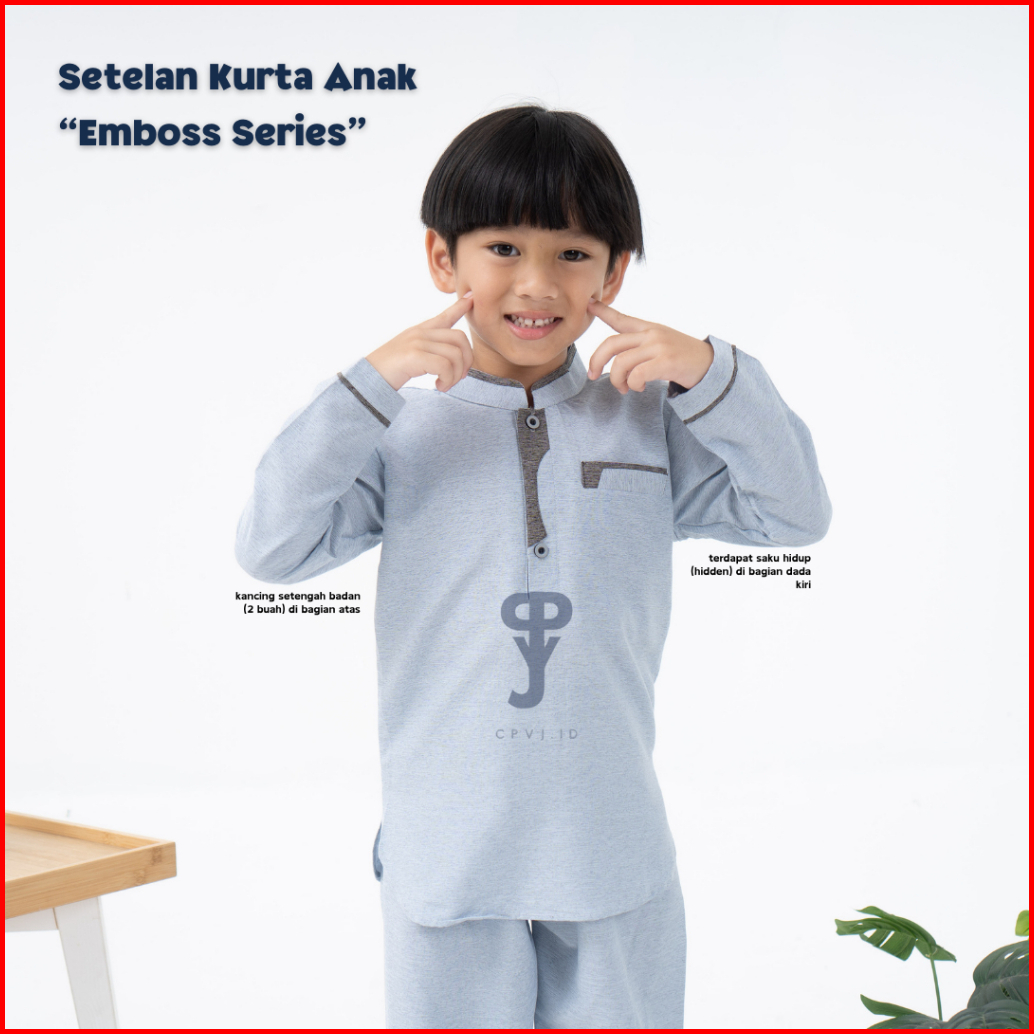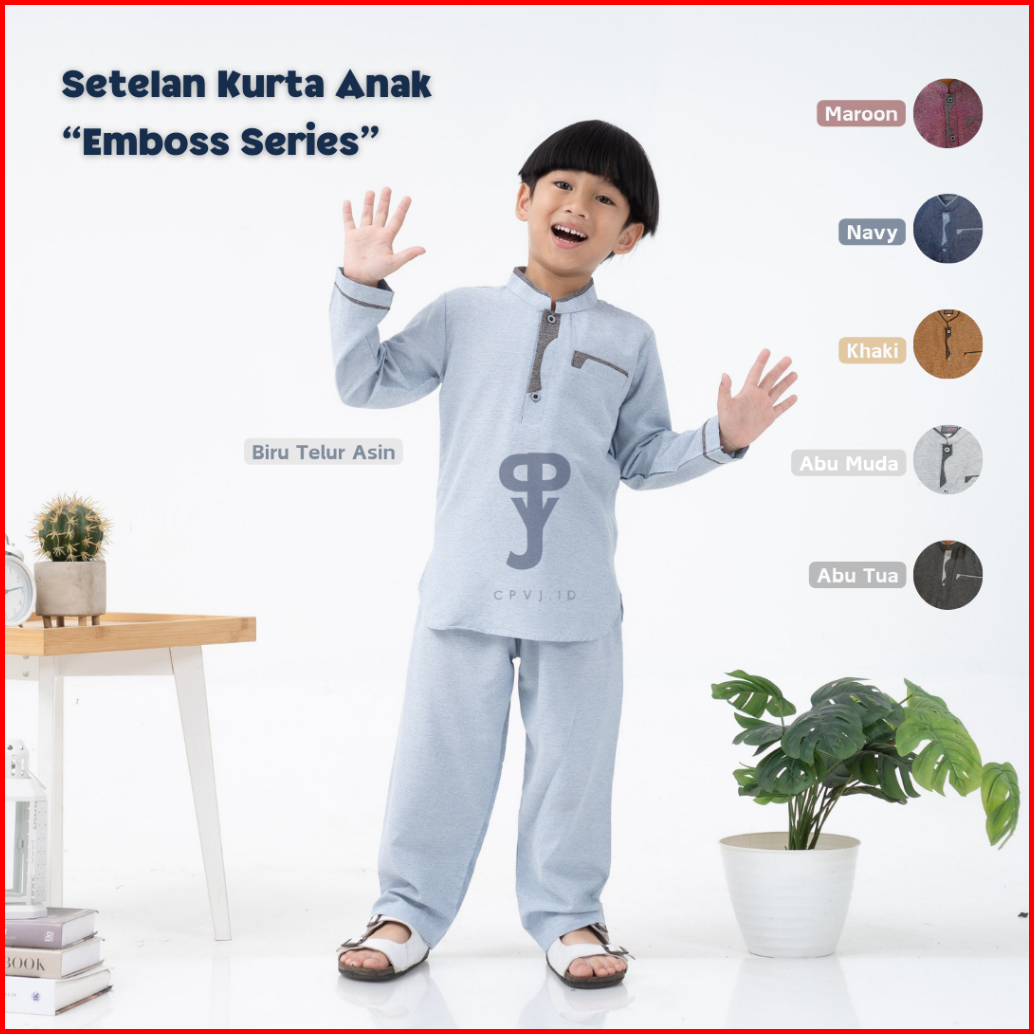 Cpvj - Baju Koko Anak Laki-laki 2-13 Tahun Setelan Pakistan Kurta Emboss Premium Series