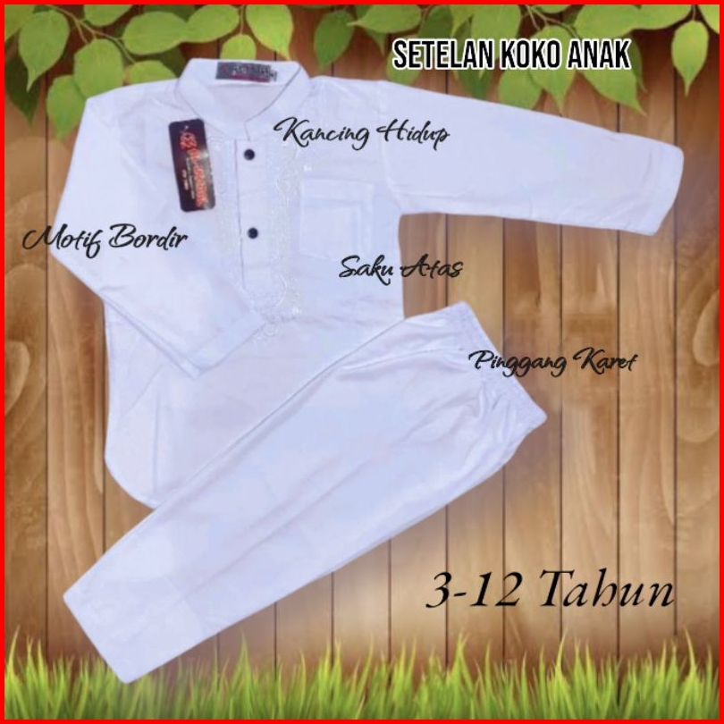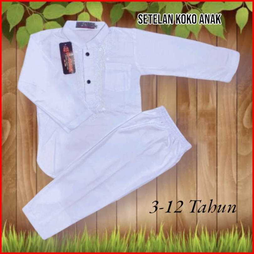 Baju Koko Anak Setelan Putih Lengan Panjang Baju Manasik Ngaji Shalat Tk-sd