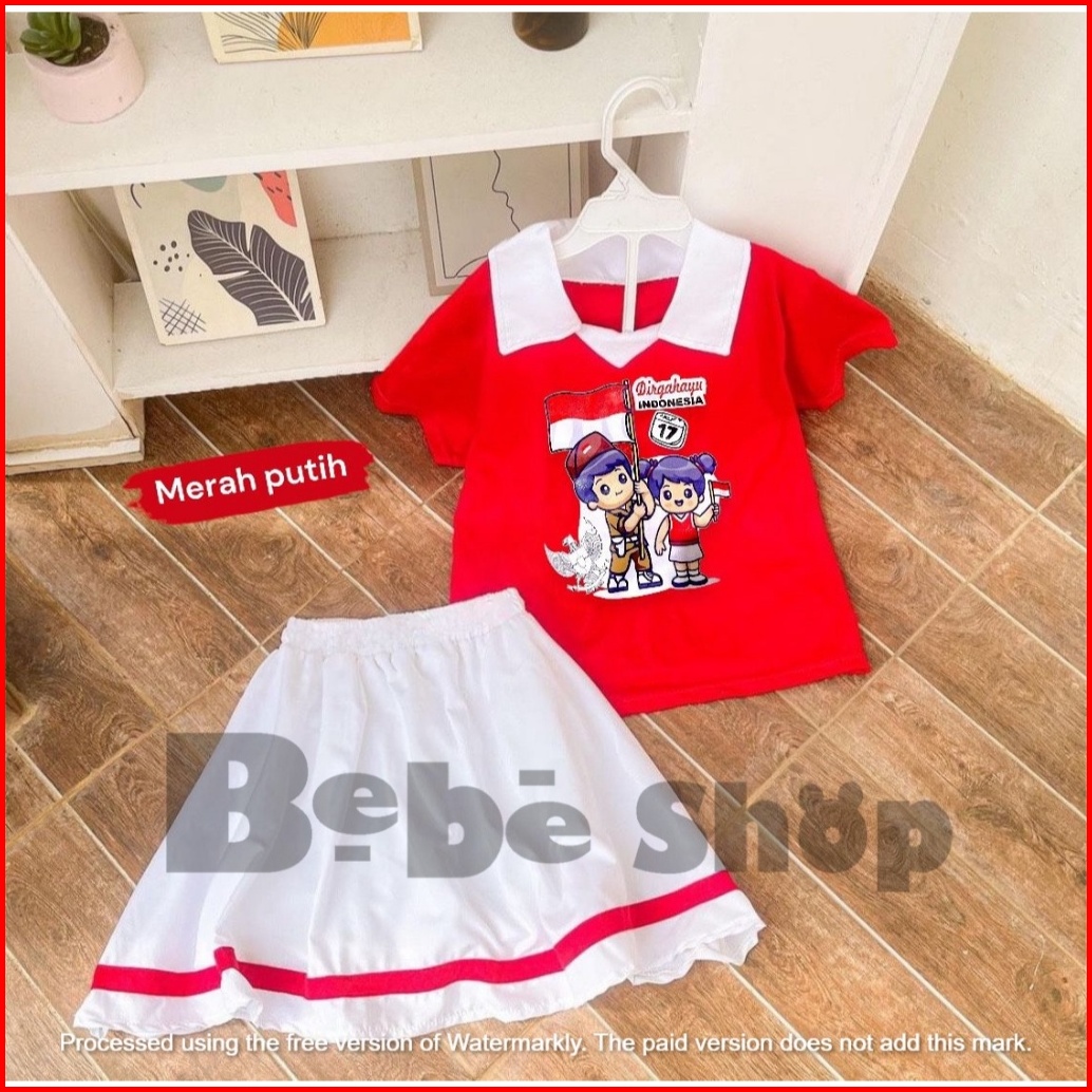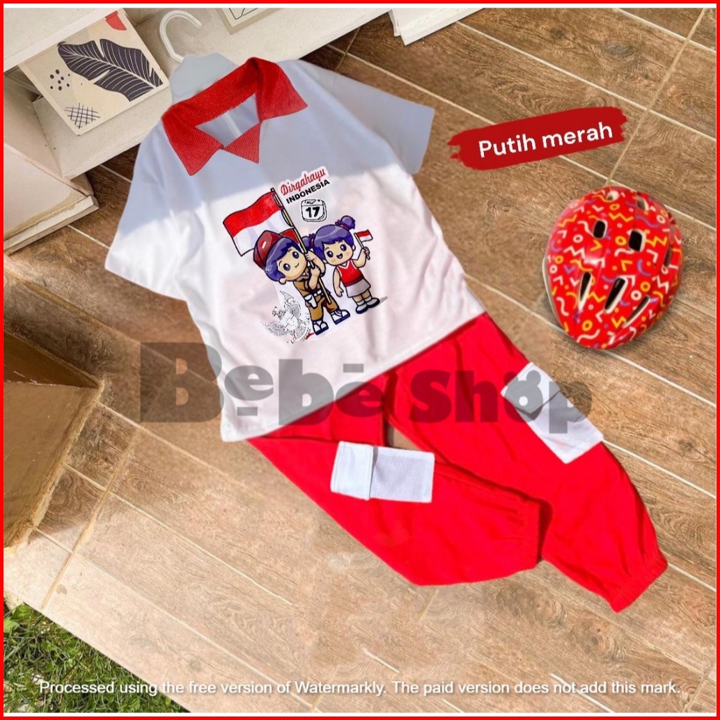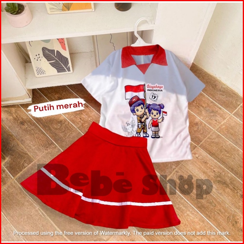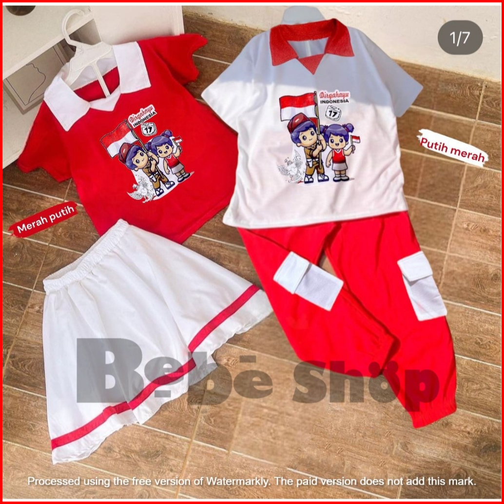 Setelan Baju Merah Putih Kaos Kerah Kemerdekaan 17 Agustus Untuk Anak Laki-laki Dan Perempuan Model Celana Cargo Dan Rok