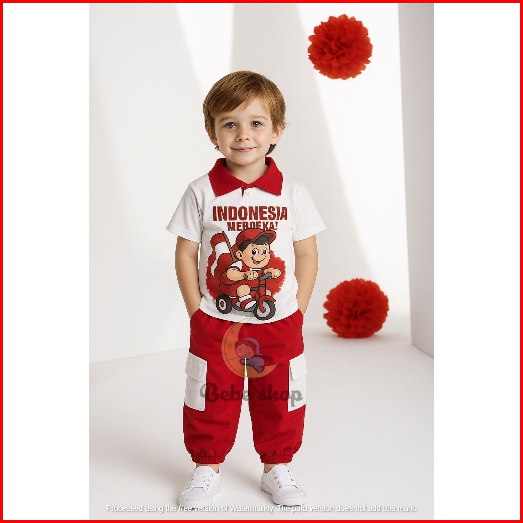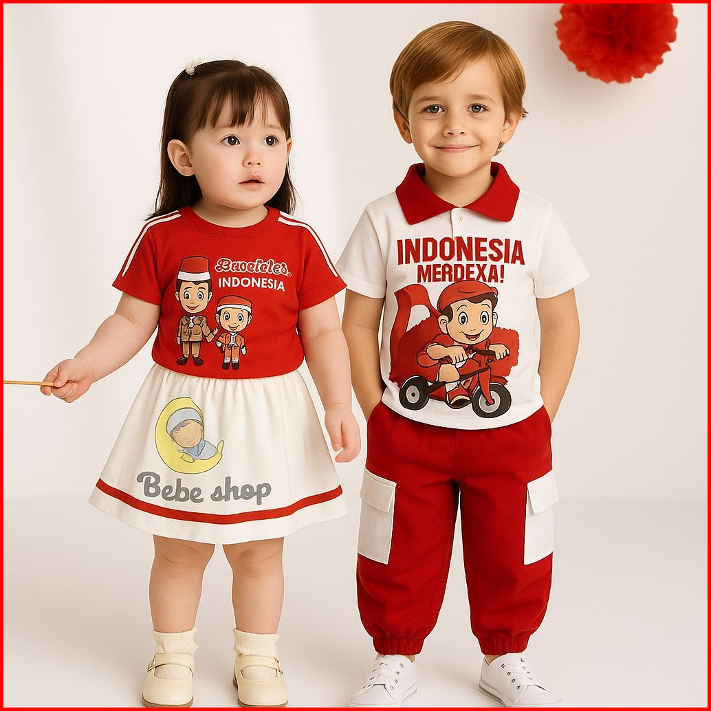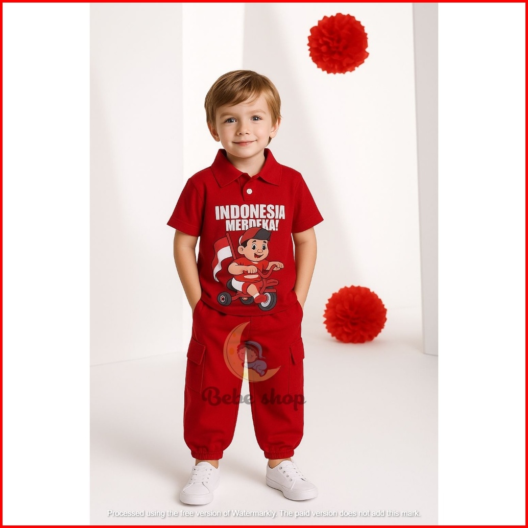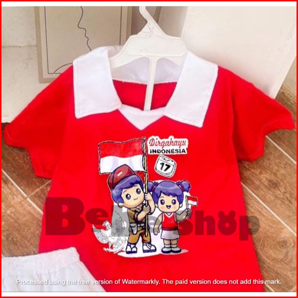 Setelan Baju Merah Putih Kaos Kerah Kemerdekaan 17 Agustus Untuk Anak Laki-laki Dan Perempuan Model Celana Cargo Dan Rok