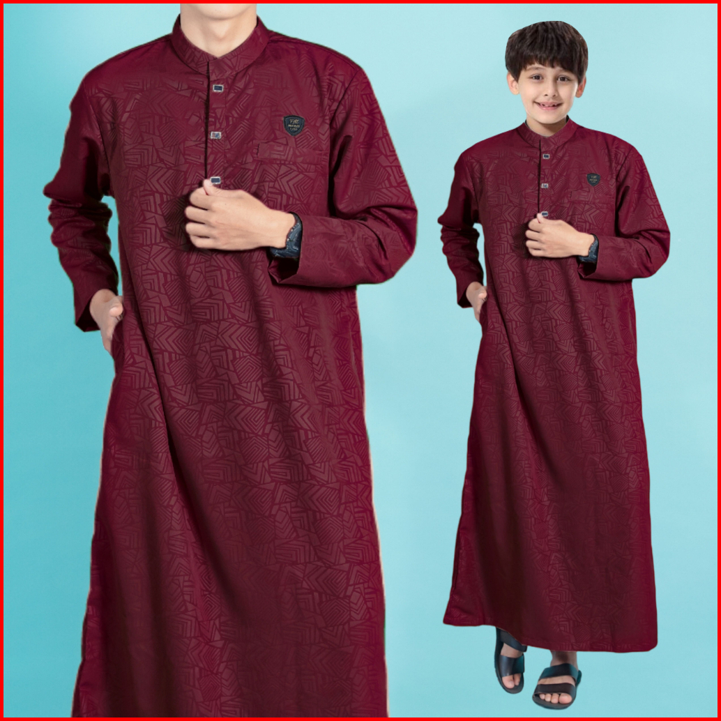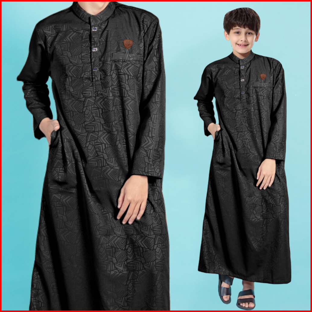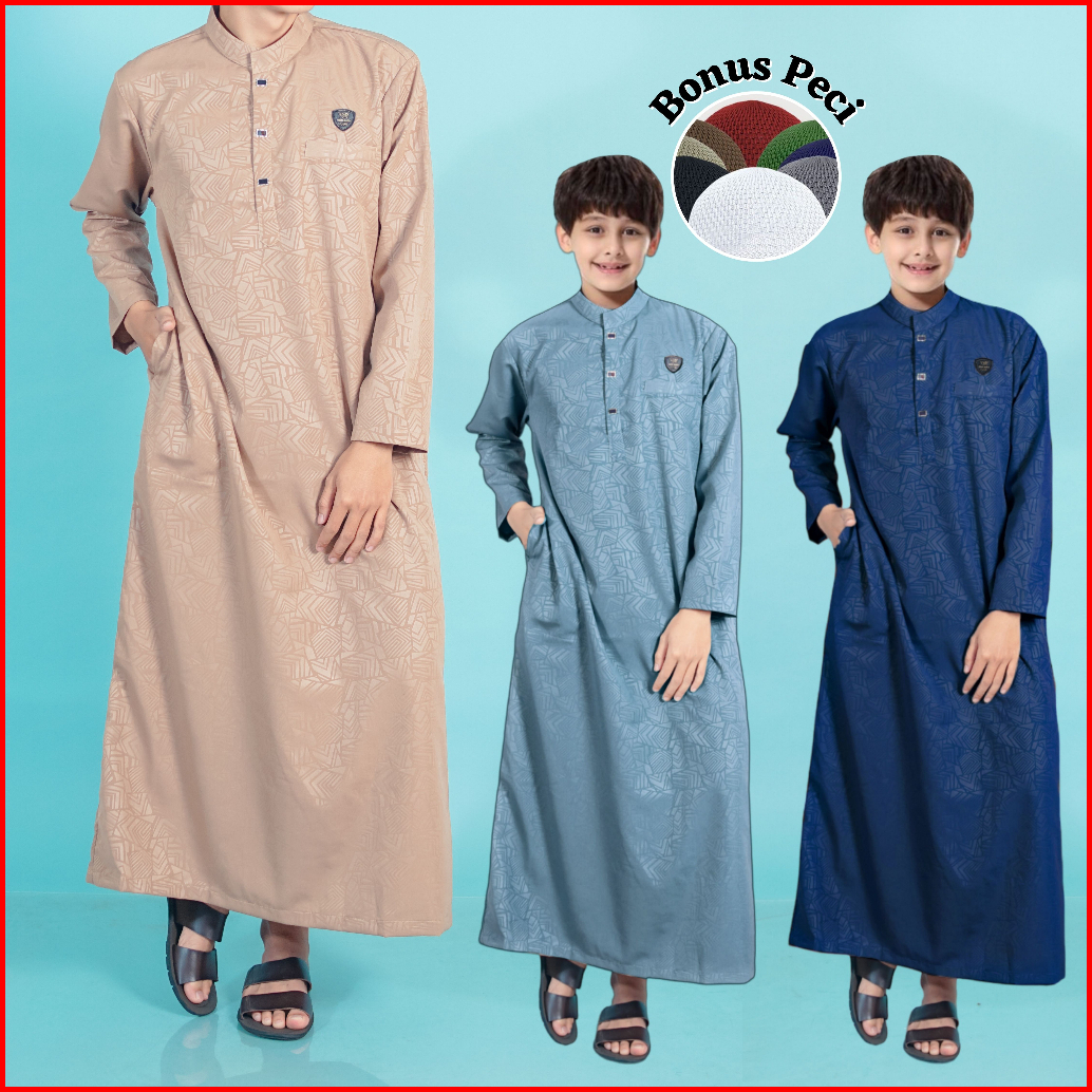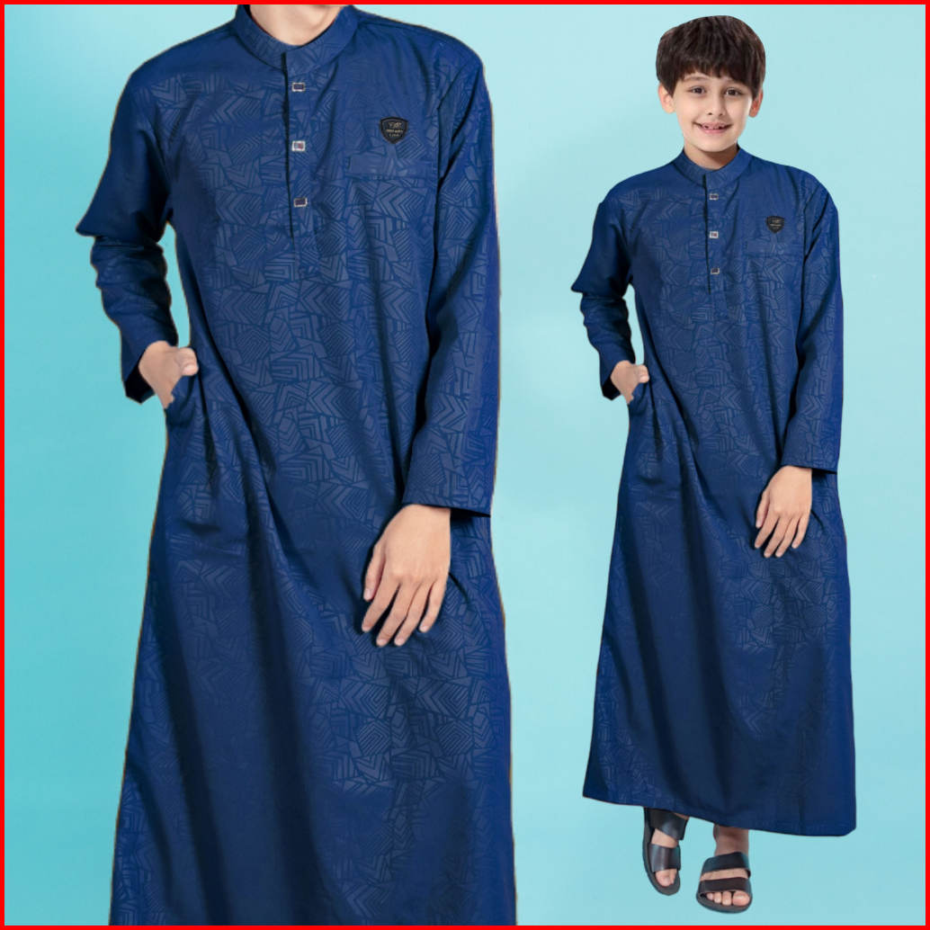 Family Muslim - Gamis Anak Katun Embos Laki Laki Usia 1-14 Tahun Jubah Anak Premium Lengan Panjang