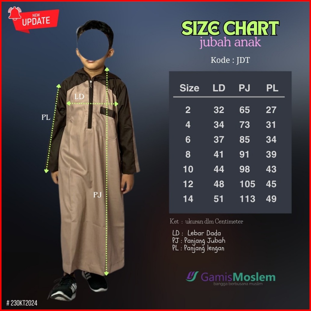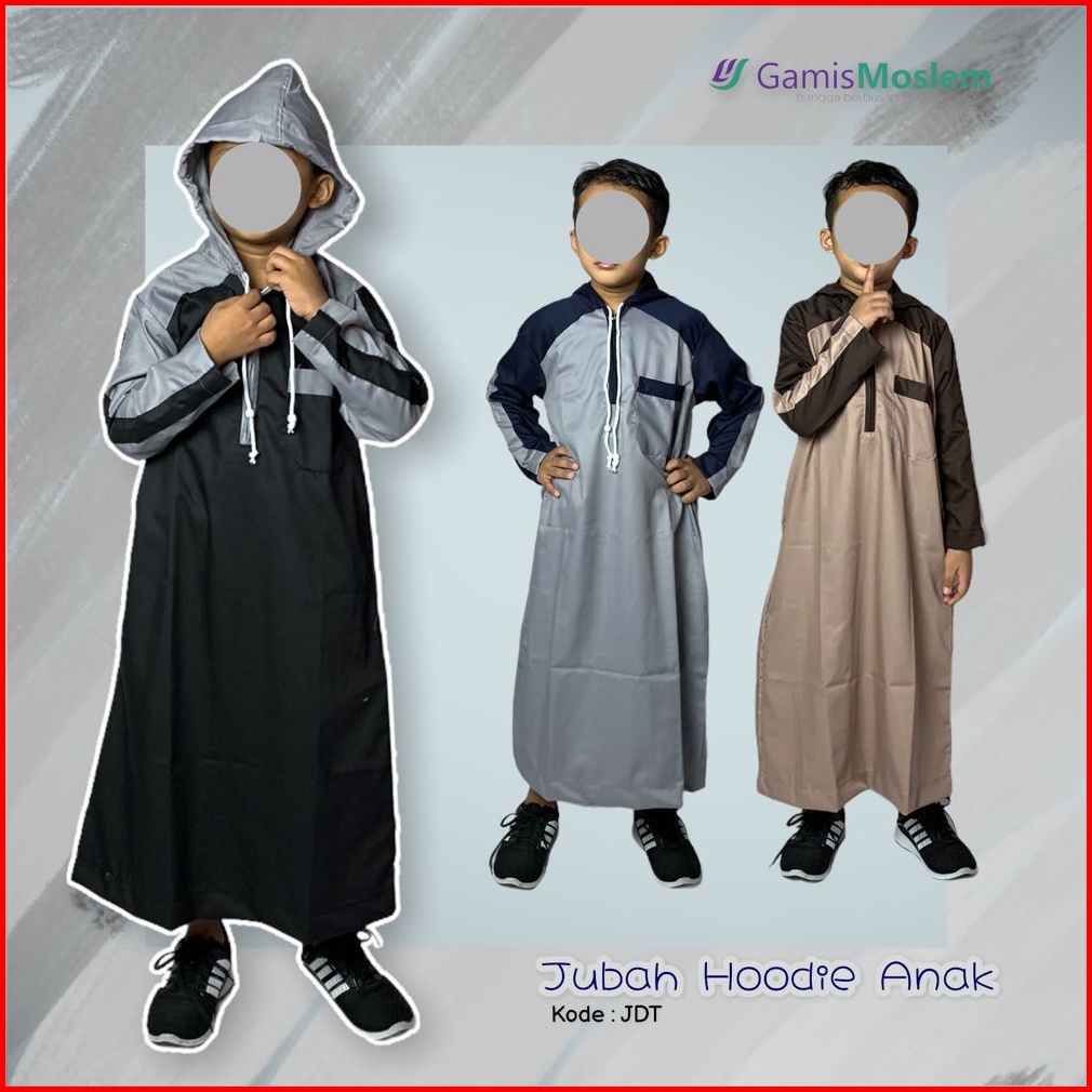 Jubah Hoodie Anak Lengan Panjang Jdt Katun Toyobo 2 Th- 14 Th