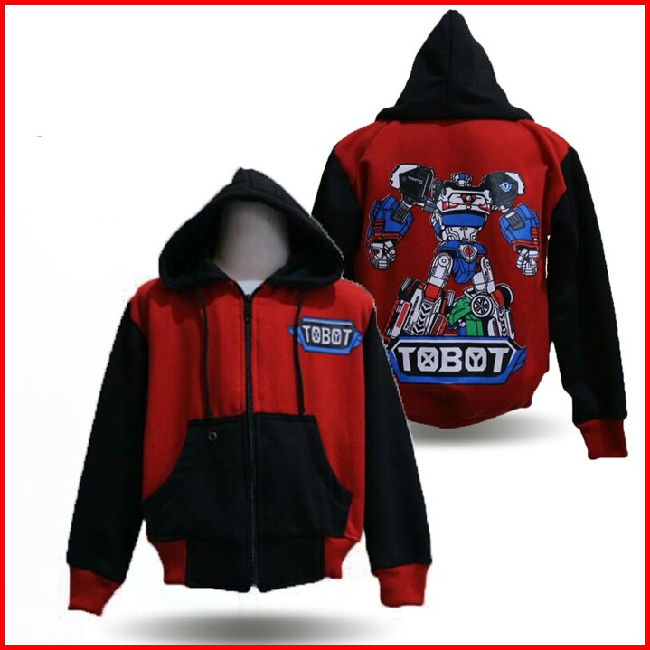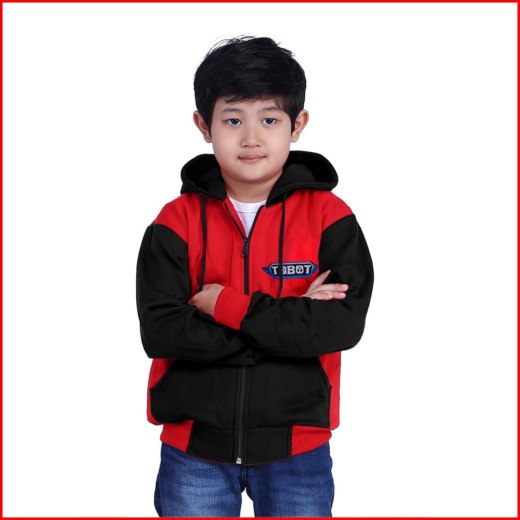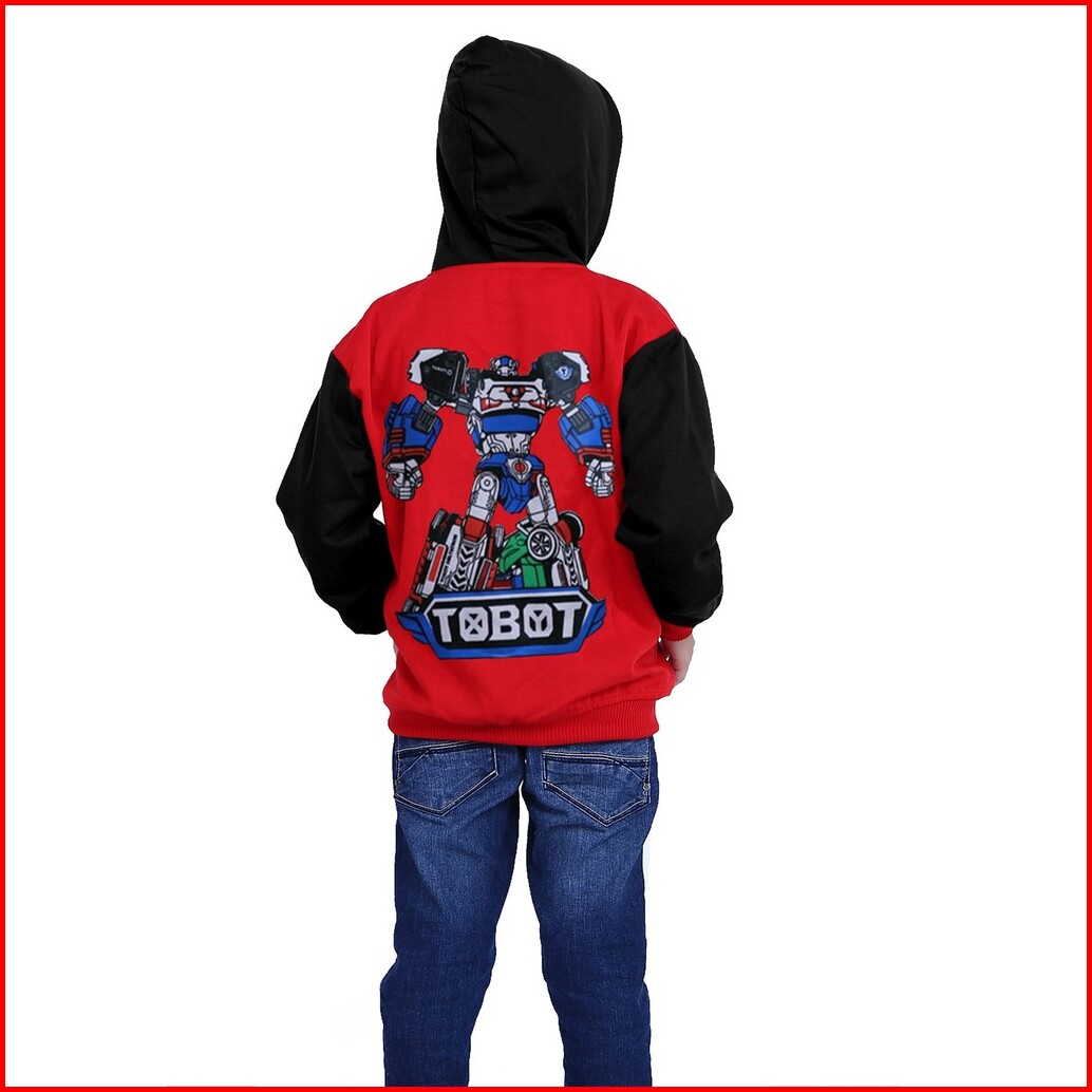 Jaket Anak Hoodie Karakter Tobot Usia 2-10tahun Lakilaki Cowok Warna Merah Hitam