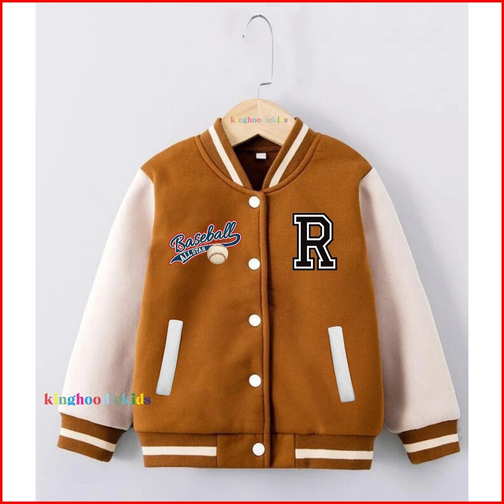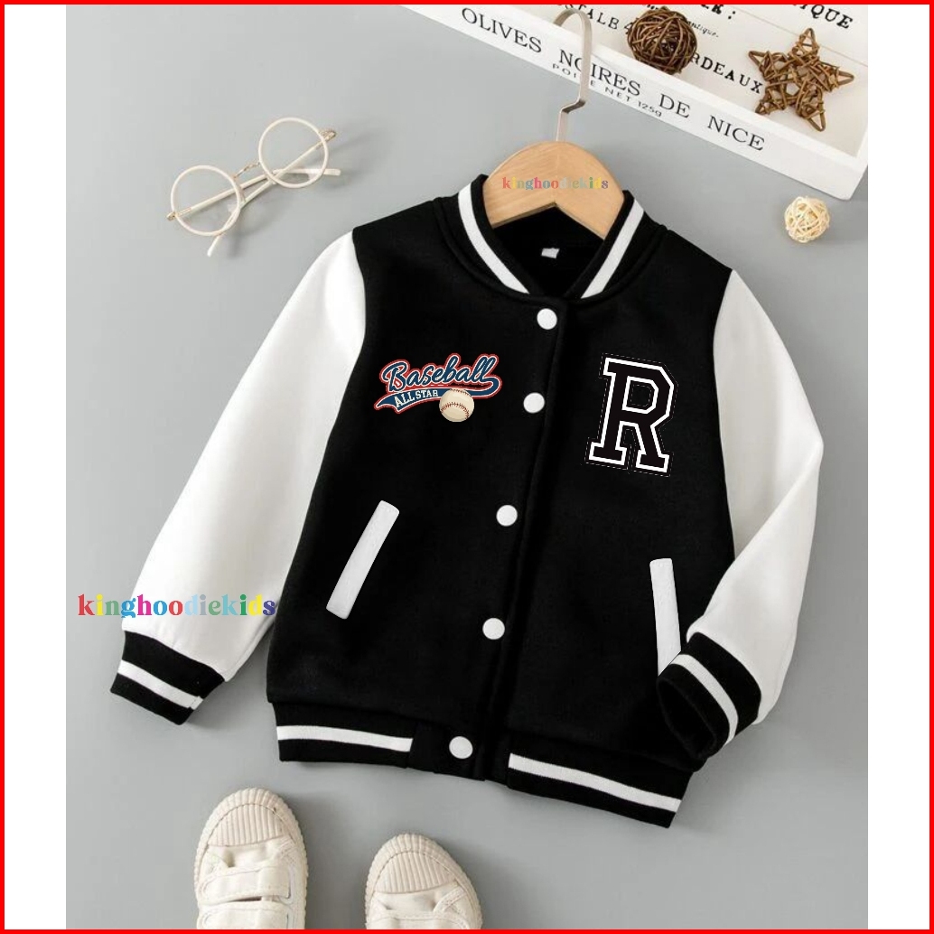 Jaket Varsity Anak Laki Laki Perempuan Inisial R Umur 2 3 4 5 6 7 8 9 10 11 12 Tahun Jaket Baseball Anak Cewe Cowo Hoodi