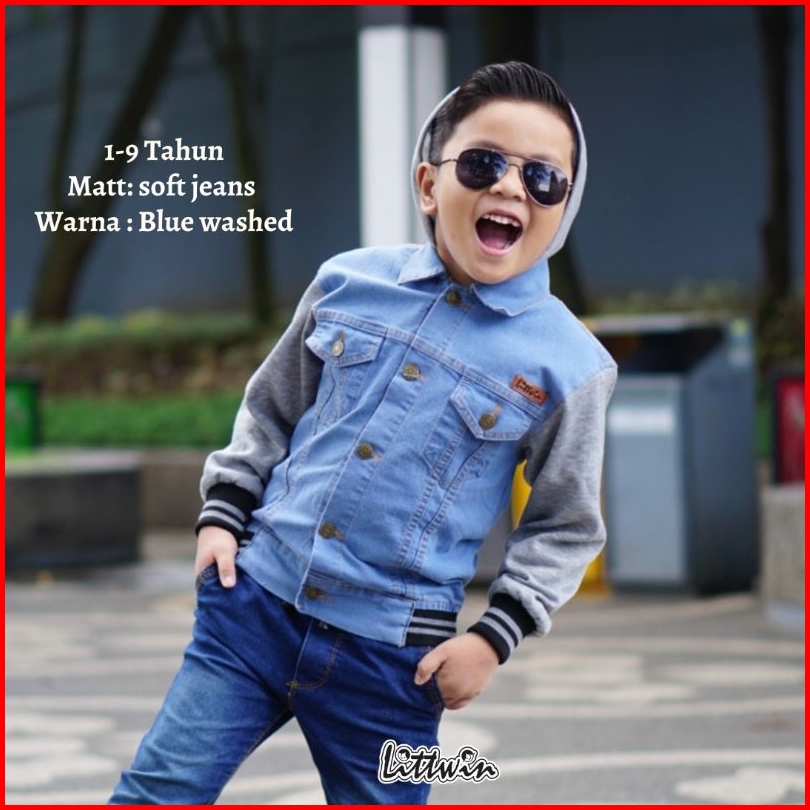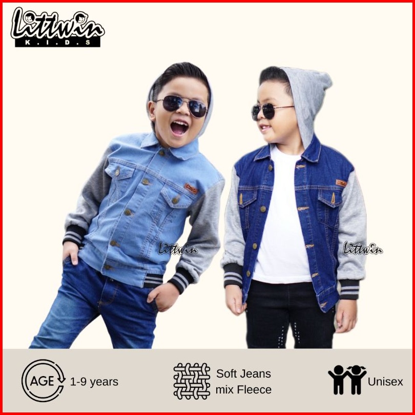 1-9 Tahun Jaket Jeans Anak Kombinasi Hoodie Jaket Jeans Anak Kupluk Jaket Jeans Hoodie Anak