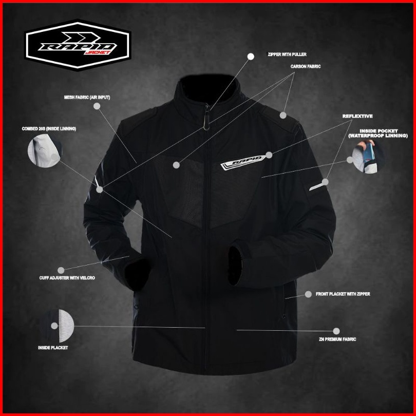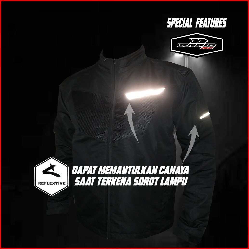 Jaket Motor Riding Rapid Blackhawk Pria Parasit Premium Jacket Reflektif Variasi Motif Carbon