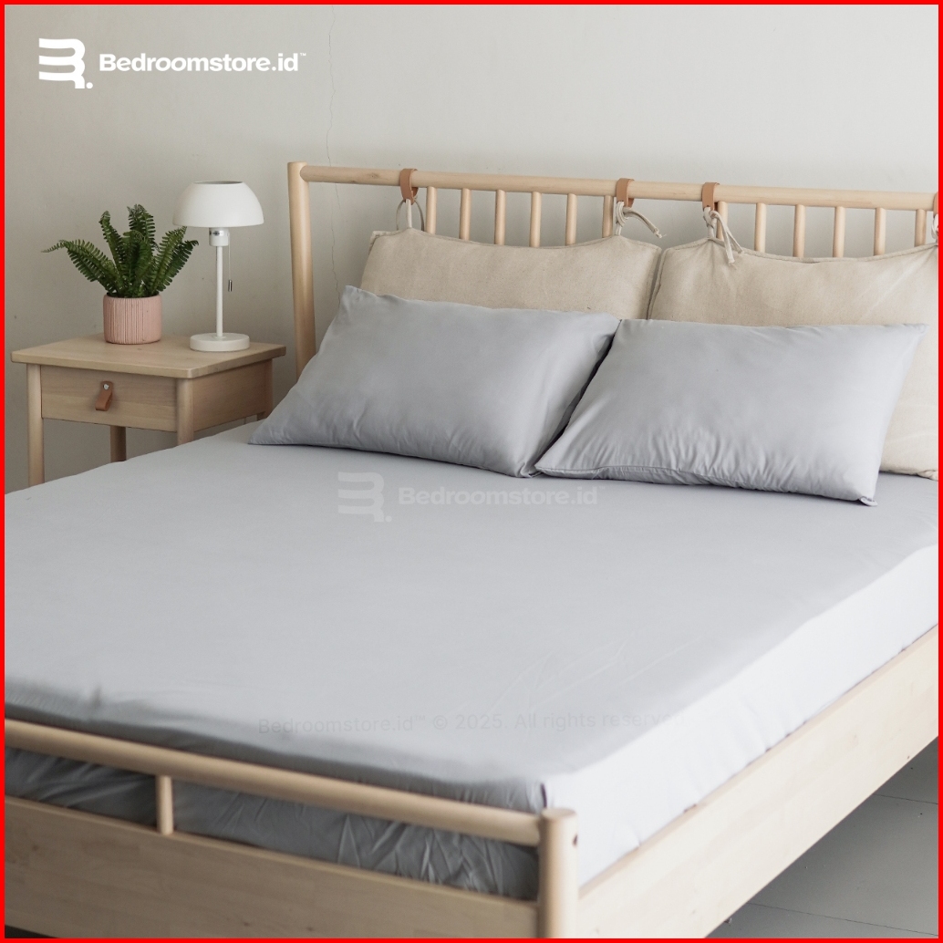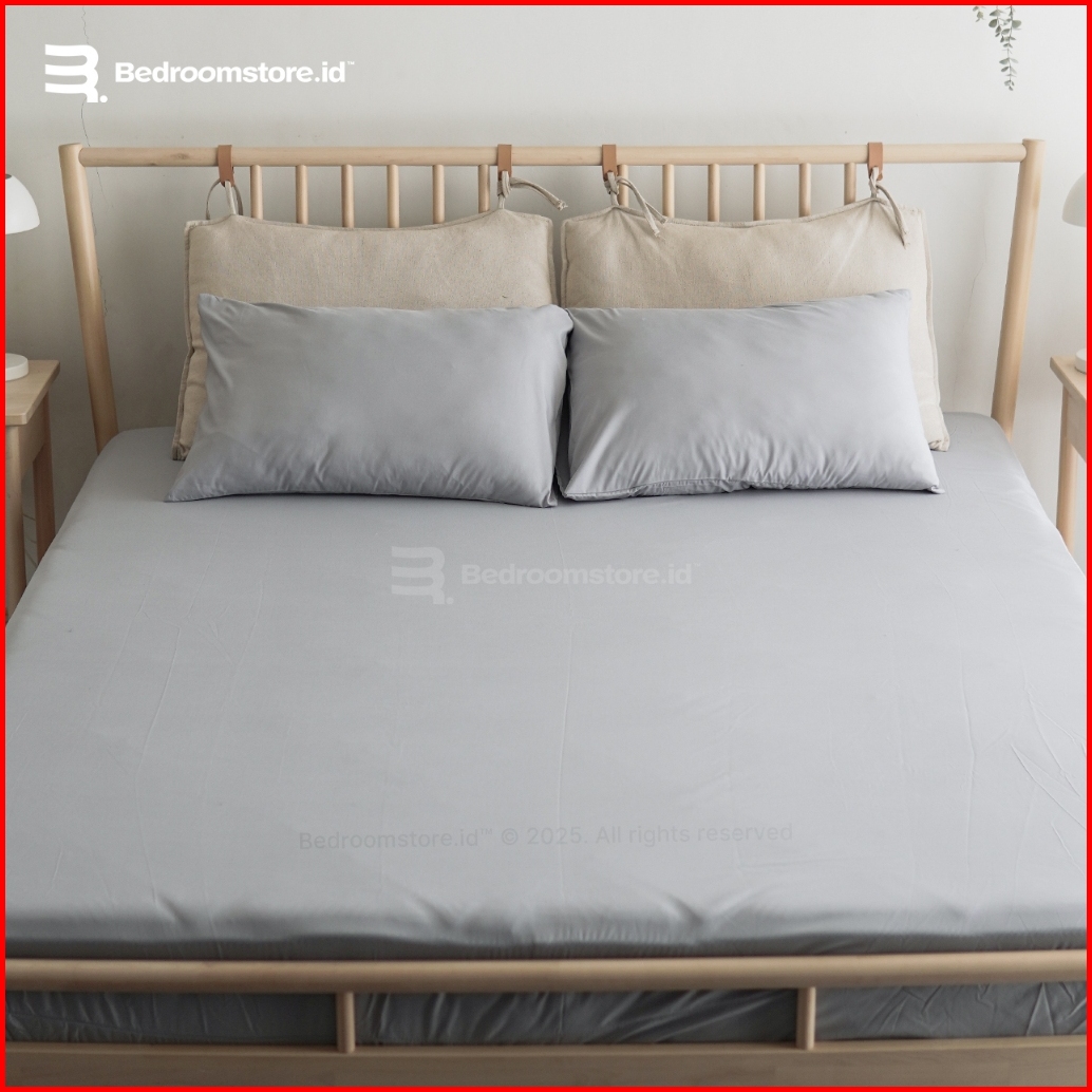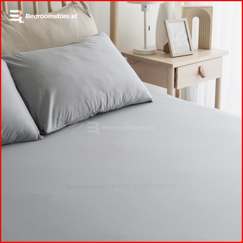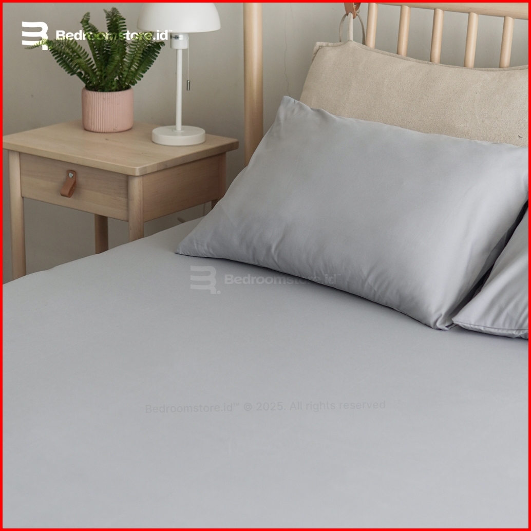 Sprei Aesthetic Polos Silver Ala Korea Sudah Termasuk Sarung Bantal Guling