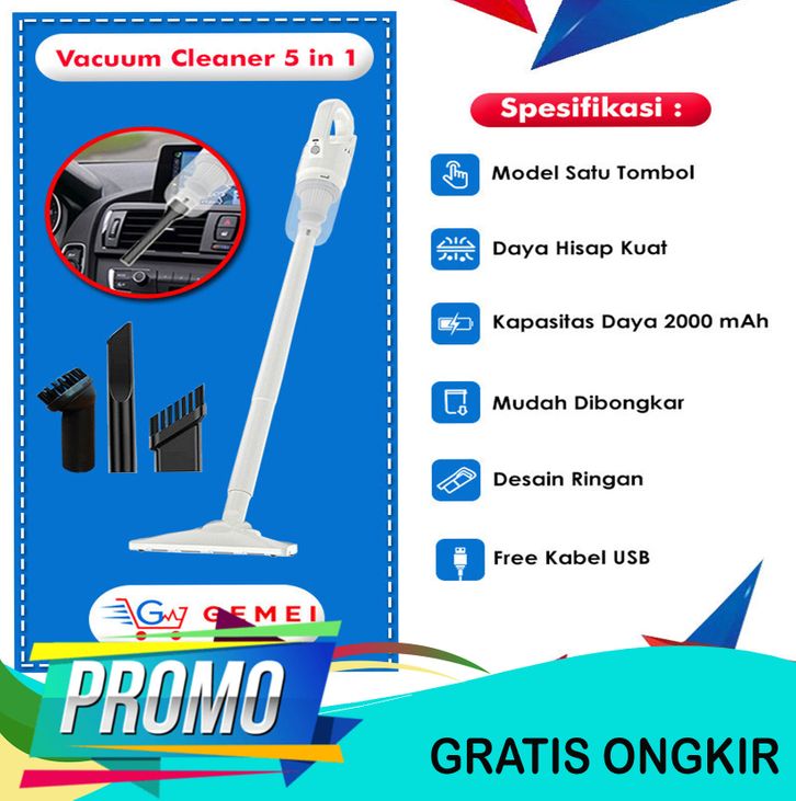 BARU (Gemei) Vacuum Cleaner Wireless Alat Penyedot Debu Mobil 5in1 Kapasitas Daya 2000mAh