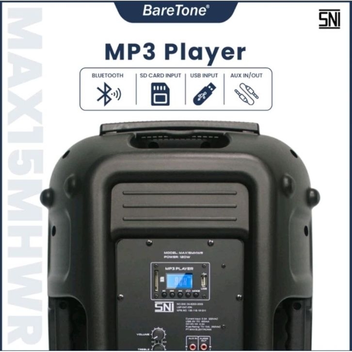 Speaker Aktif Portable Meeting Wireless 15 Inch Baretone MAX15MHWR 15 MHWR Original Usb Bluetooth