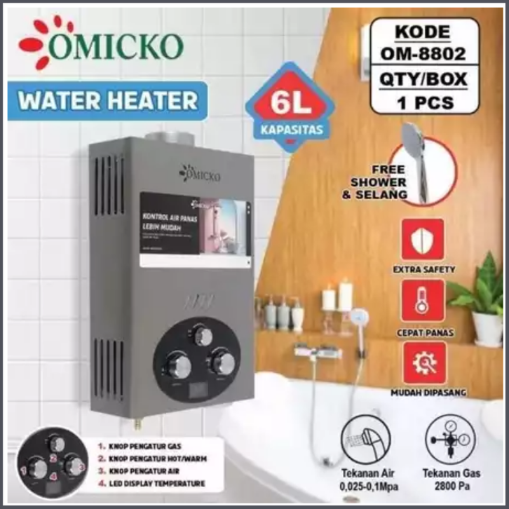 Niko NK- 6LN Putih / NK-6LDN Hitam Water Heater Water Hiter Water Heter Pemanas Air Niko Gas