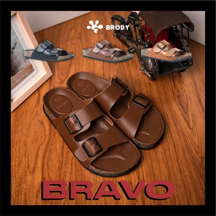 Sandal Pria Casual Sandal Slop Birken Sol Puyuh Brody Bravo - brown