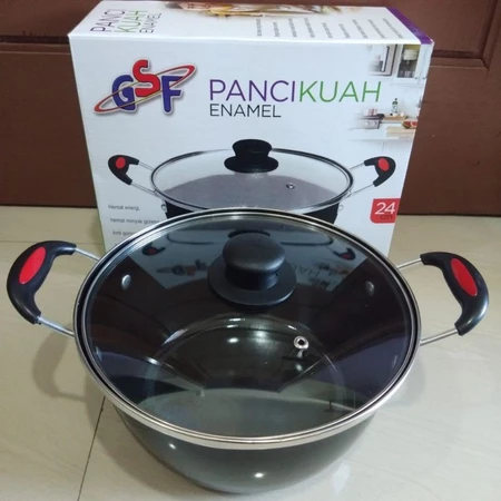Panci Kuah Tutup Kaca Enamel Gsf 4024 24 Cm Anti Lengket Panci Serbaguna Gsf Anti Lengket Panci Sup Panci Serbaguna