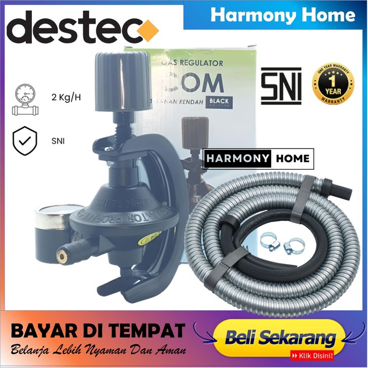 1SET PAKET Regulator Destec COM -U12RM+Meter+Selang Gas Fleksibel Metal, Desteg , Destek , Destec , R⁶egulator Gas Deste