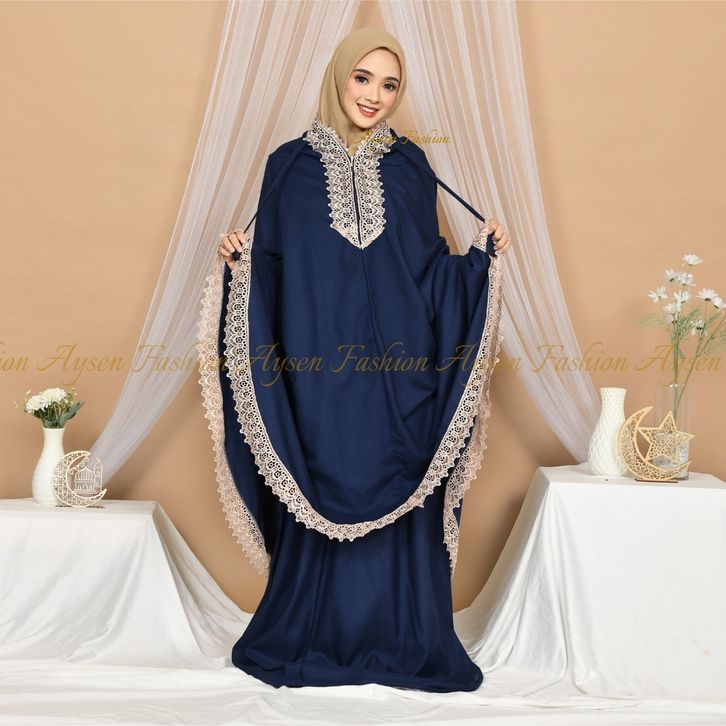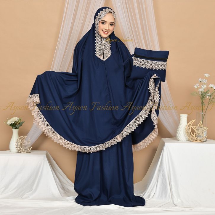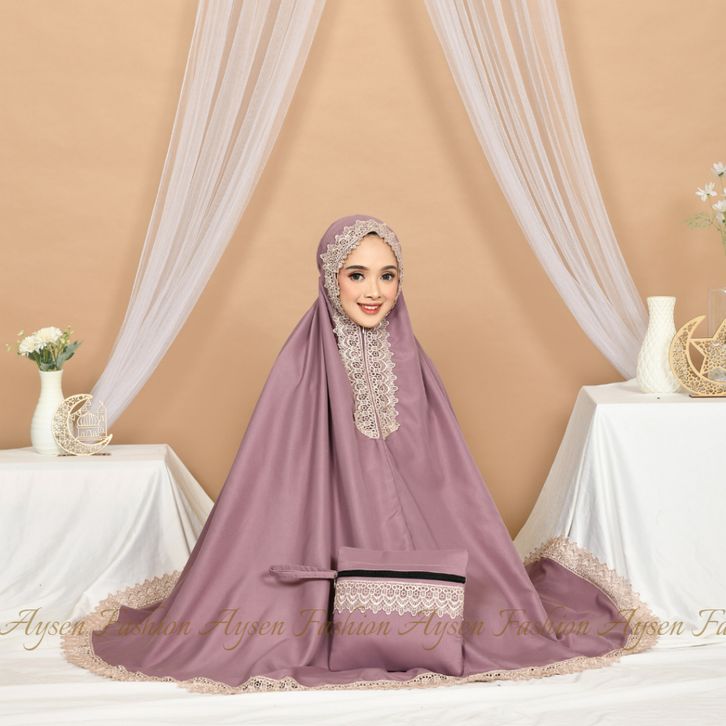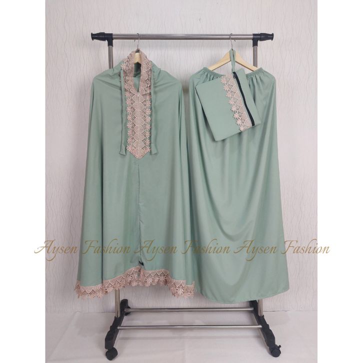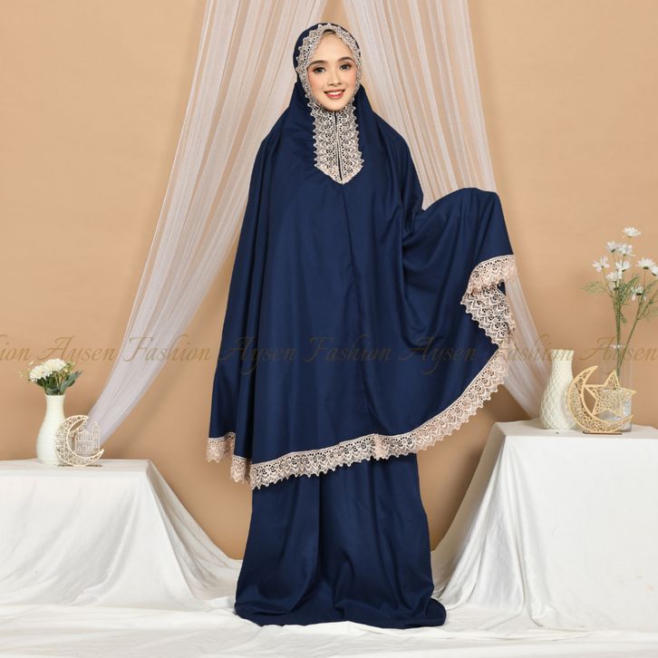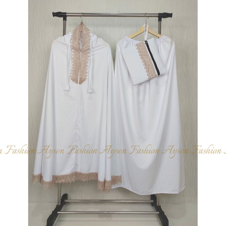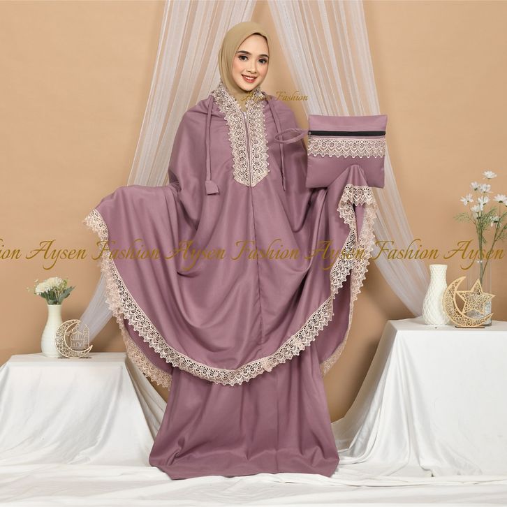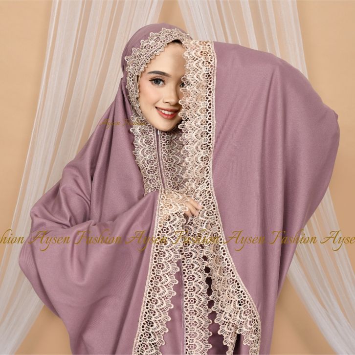 Mukena Dewasa 2in1 Resleting Dagu Katun Polos Renda