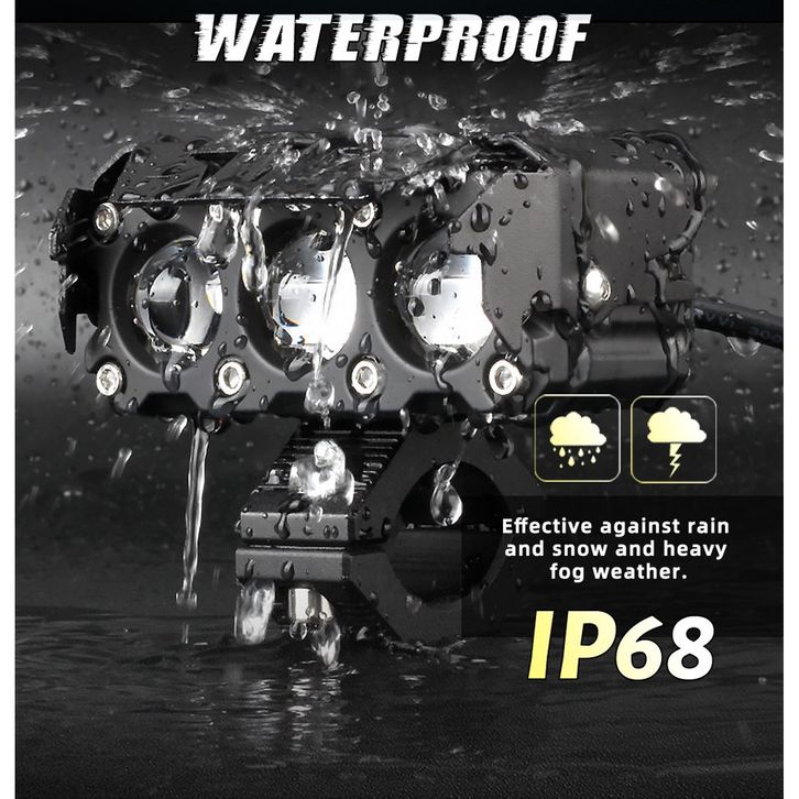 Lampu Tembak Laser SQL 3 Mata D2 D3 Full Alumunium Premium kuning-putih150W 10000LM IP68 DC 9V-85V