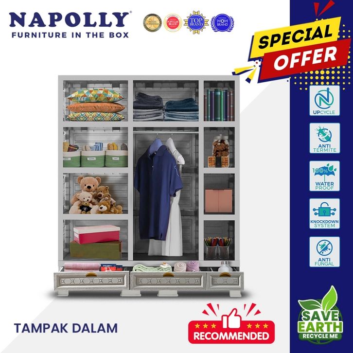 NAPOLLY 5 Pintu Lemari Pakaian Plastik Gantung Kaca Kunci MIDICAB 5412
