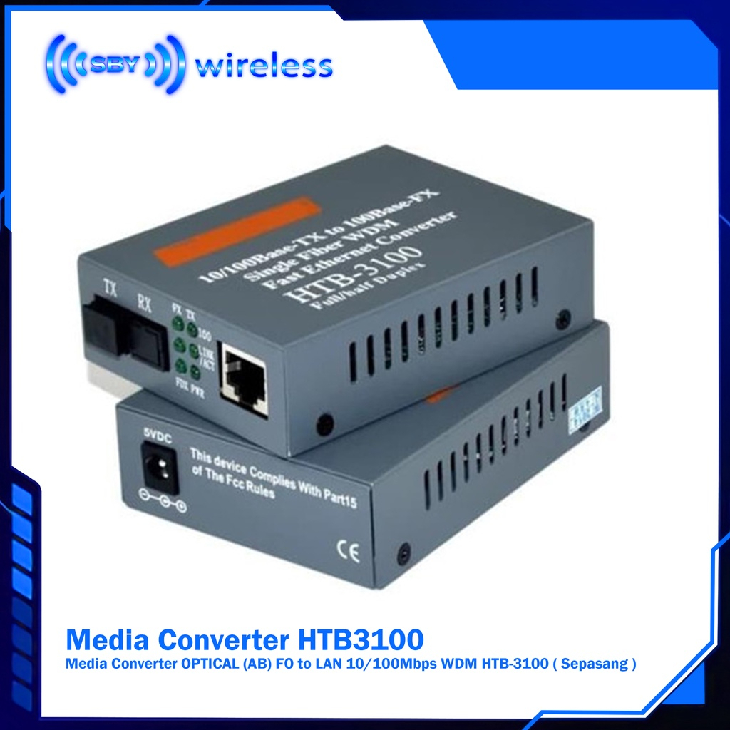 HTB3100, Media Converter OPTICAL (A/B) FO to LAN 10/100Mbps WDM HTB-3100 ( Sepasang )