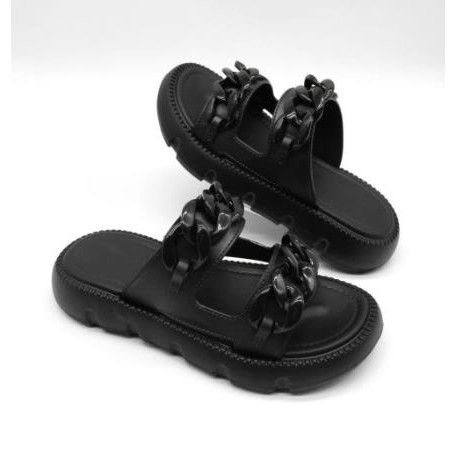 Sandal Cewek Karet Jelly Wedges Tebal Bahan Elastis Empuk Tali Belakang Motif Double Strap Kualitas Premium