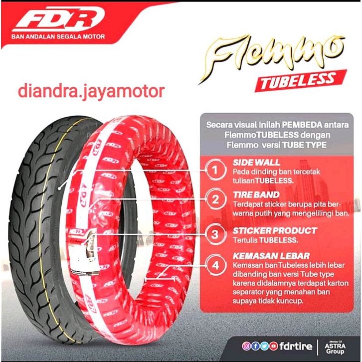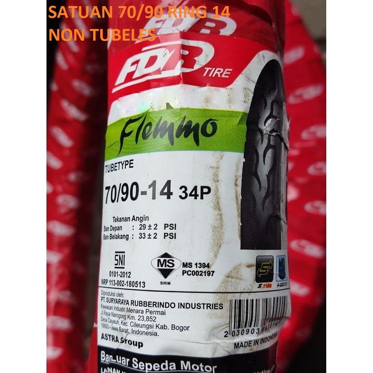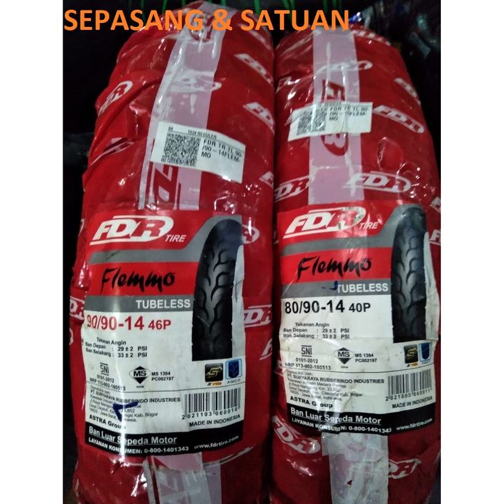 BAN TUBELESS FDR FLEMINO 80 90 90 90 100 90 RING 14 MOTOR MATIC HONDA YAMAHA ORI TUBLES 80 90 100 BEAT MIO NON FLEMMO