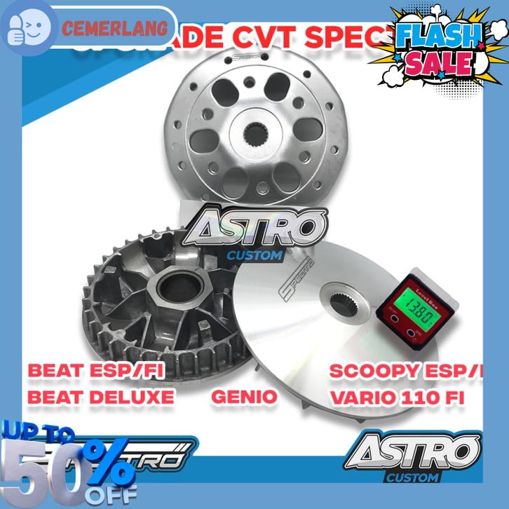 Paket Upgrade CVT Spectro BeaT Fi ESP Scoopy Fi ESP Genio Vario 110 fi Mangkok Kopling Pulley Rumah Roller AstroCustom