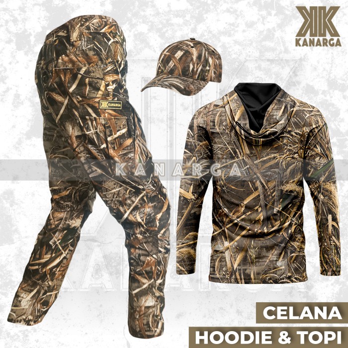 SATU SET SETELAN BAJU HOODIE CELANA TOPI KAMUFLASE CAMO HUNTING BERBURU MAX5 FULL SET, M = 28